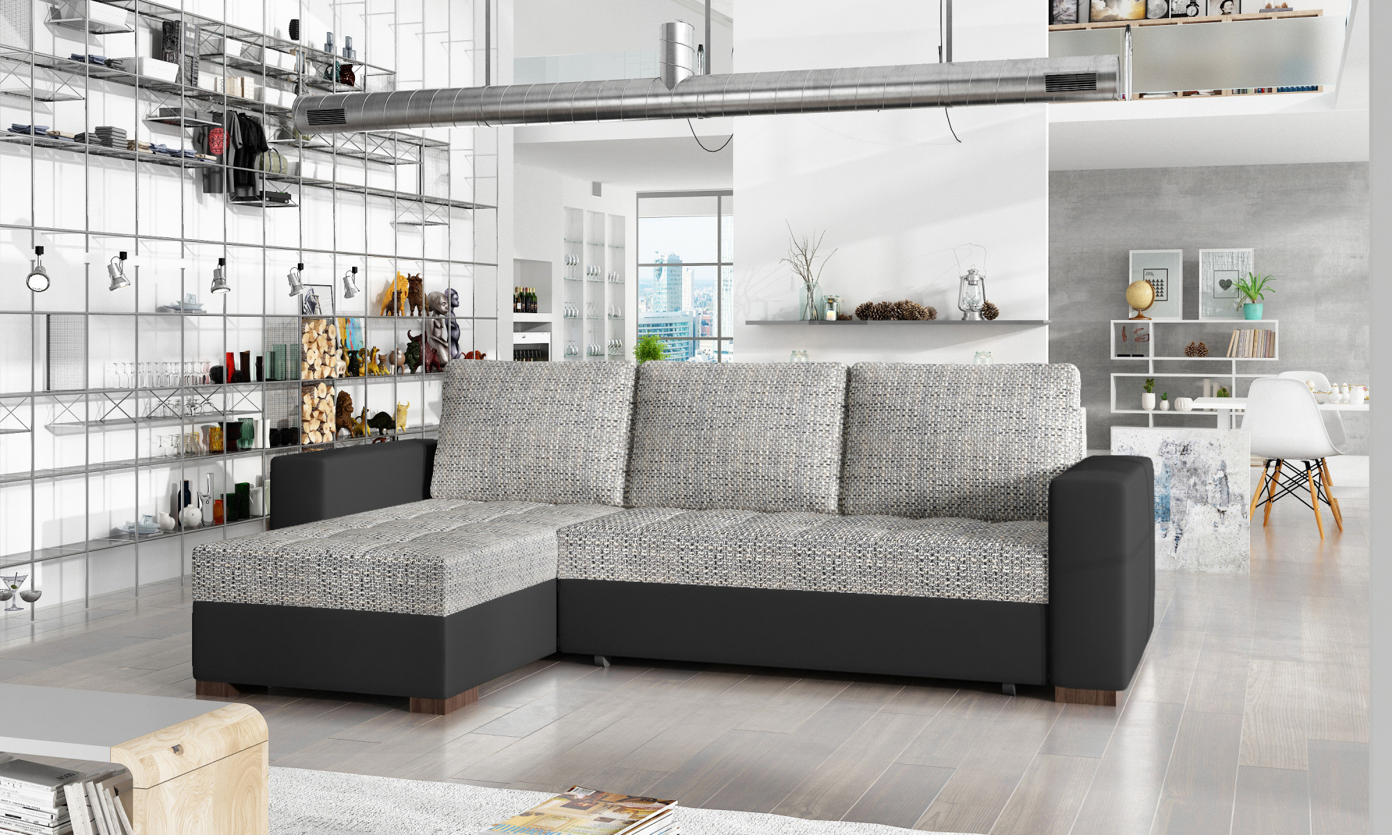 Newark je elegantní, klasická a minimalistická rohová pohovka s rozměry 237 x 150 x 90 cm, která se dokonale hodí do jakéhokoli interiéru bez ohledu na jeho velikost. Sedák našeho nábytku je vyplněn bonell pružinami a pěnou T25, což zajišťuje maximální pohodlí při každodenním používání. Další výhodou nábytku je jeho přizpůsobení pro funkci spaní a dva úložné prostory na ložní prádlo. Po rozložení nábytku pomocí DL automatu získáme postel s rozměry 195 x 125 cm. Mezi jeho charakteristické rysy můžeme zahrnout: čalouněné opěradlo, prostorné polštáře a prošívání na sedácích.