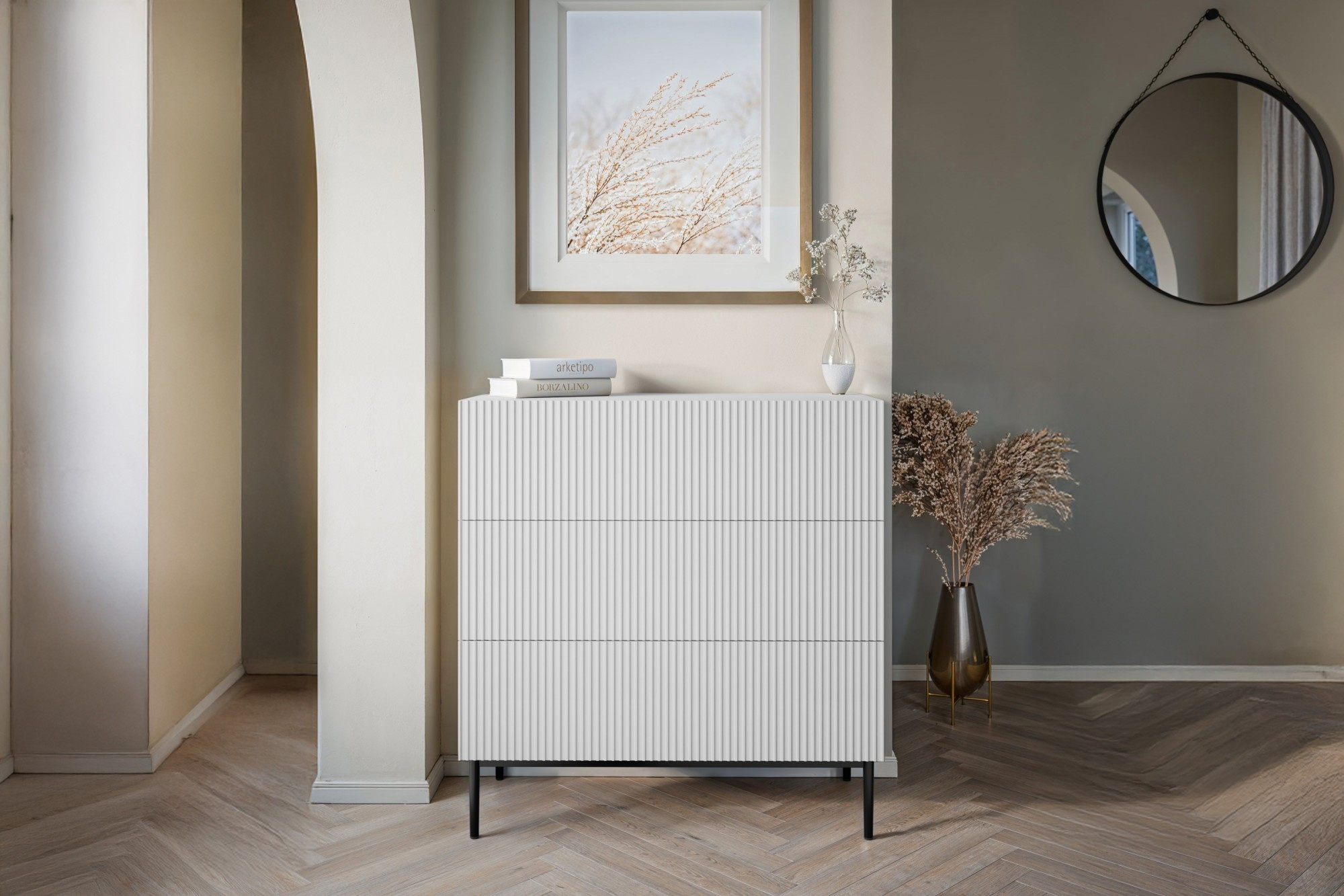 NICOLE KOMODA 100 3SZ - bílý mat / černý rám