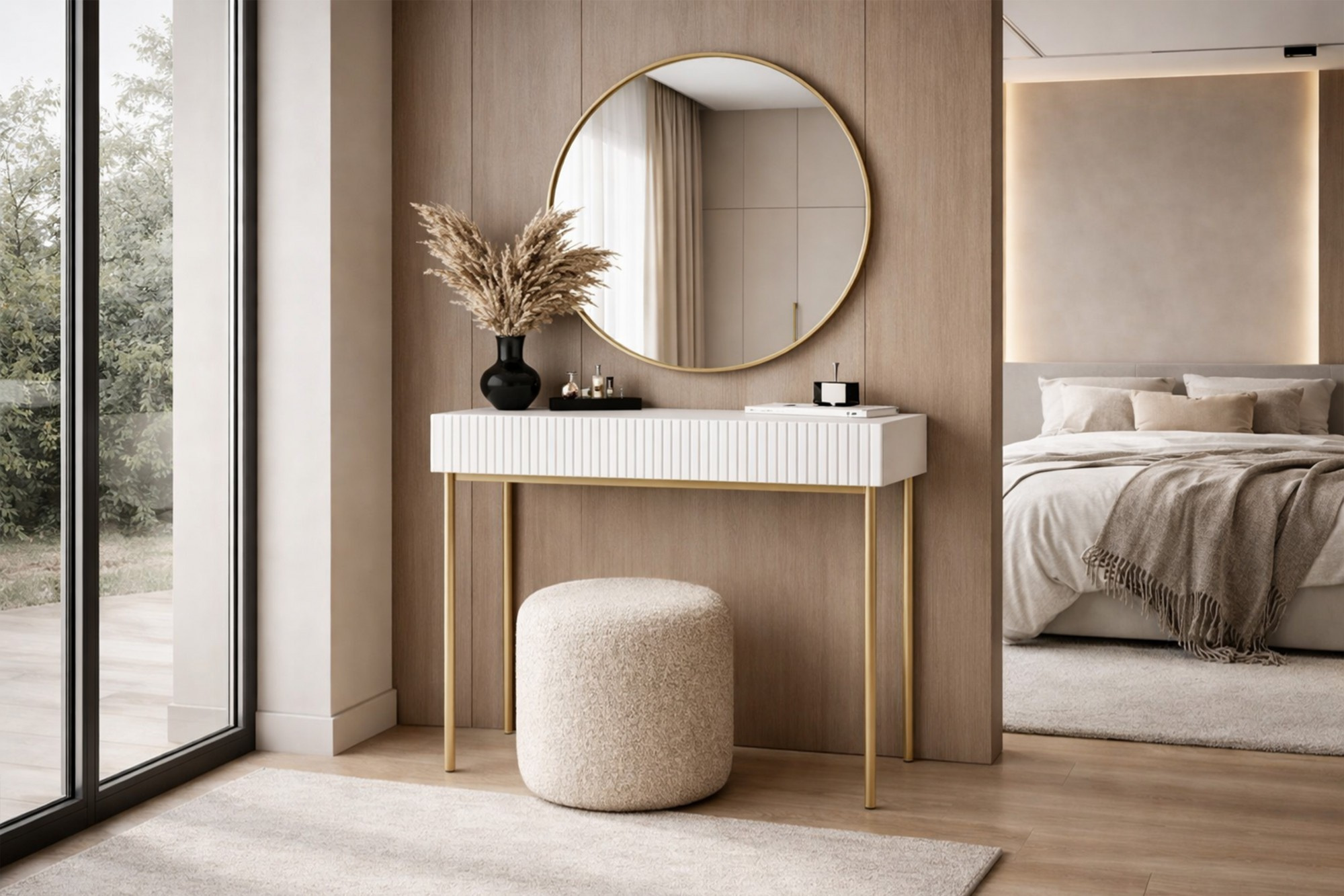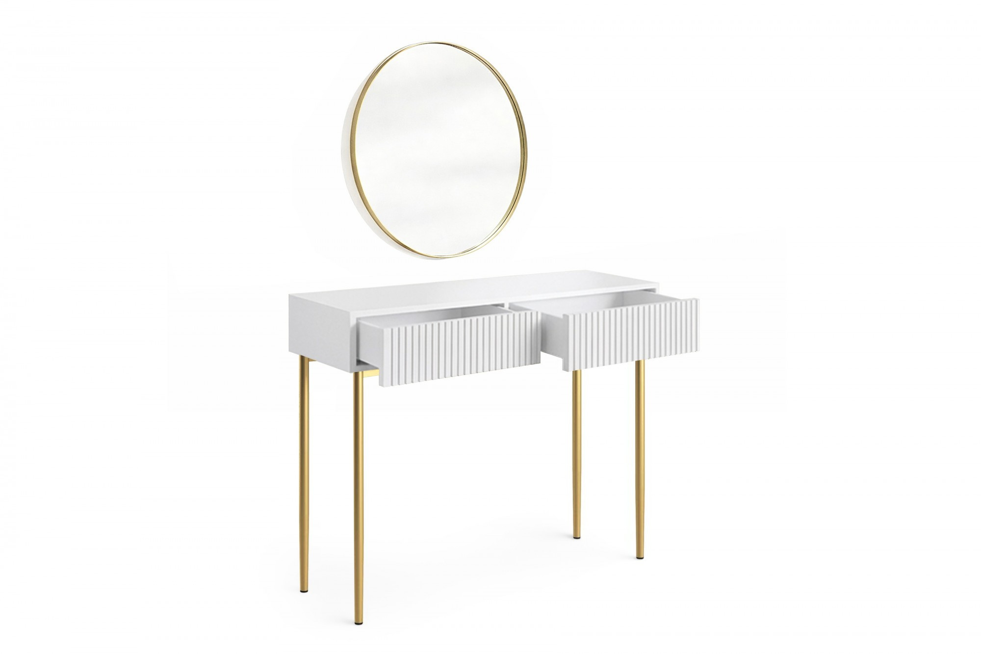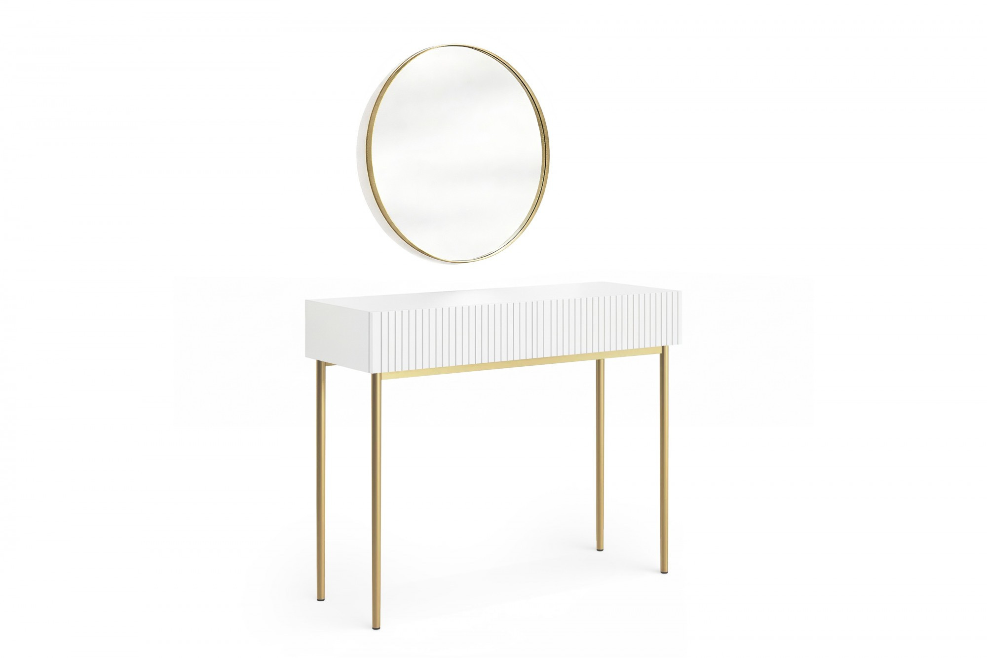 NICOLE TOALETKA 100 2SZ - bílý mat / zlatý rám + NICOLE ZRCADLO 80 - zlatý