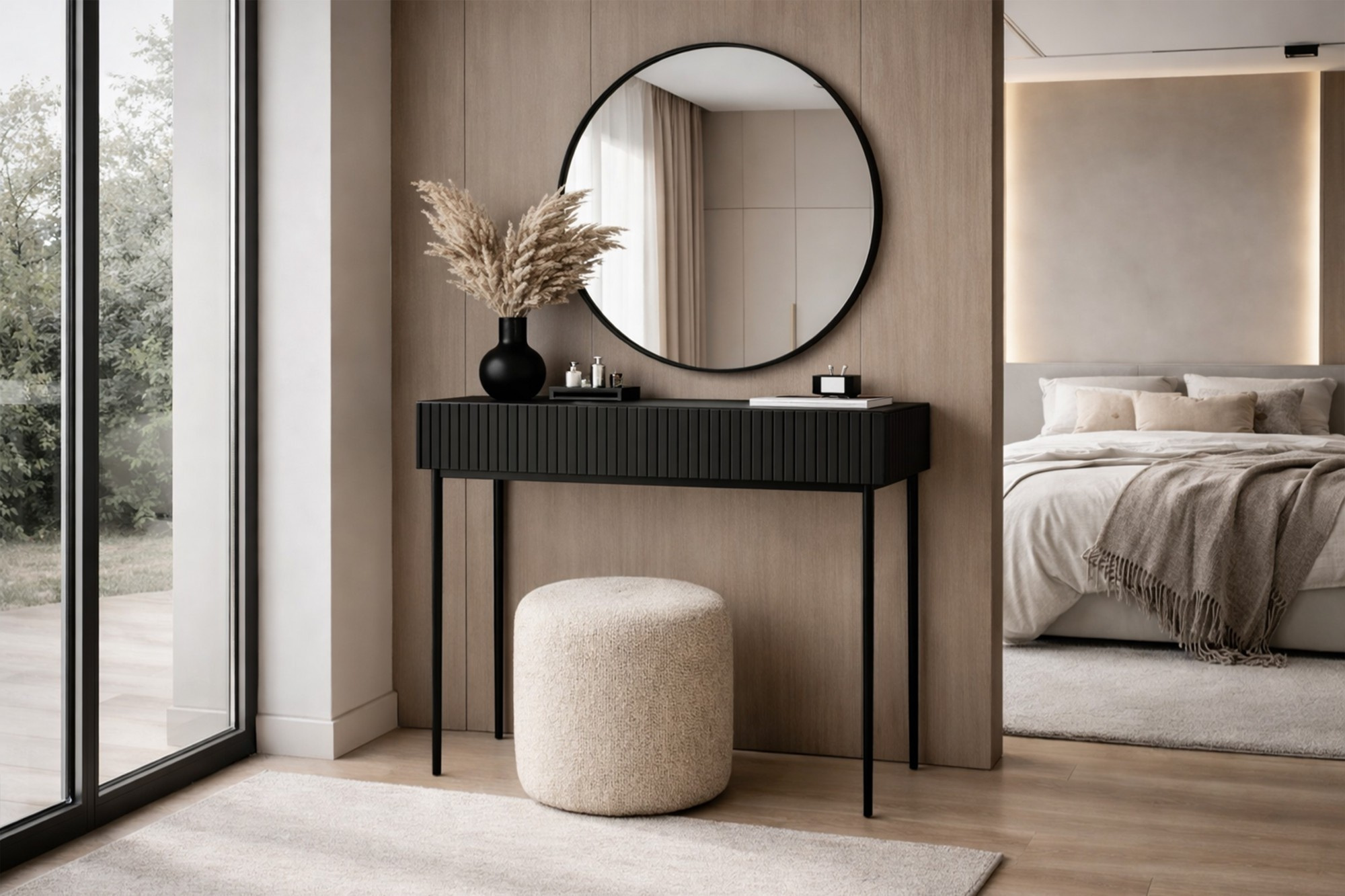NICOLE TOALETKA 100 2SZ - černý mat / černý rám + NICOLE ZRCADLO 60 - černý
