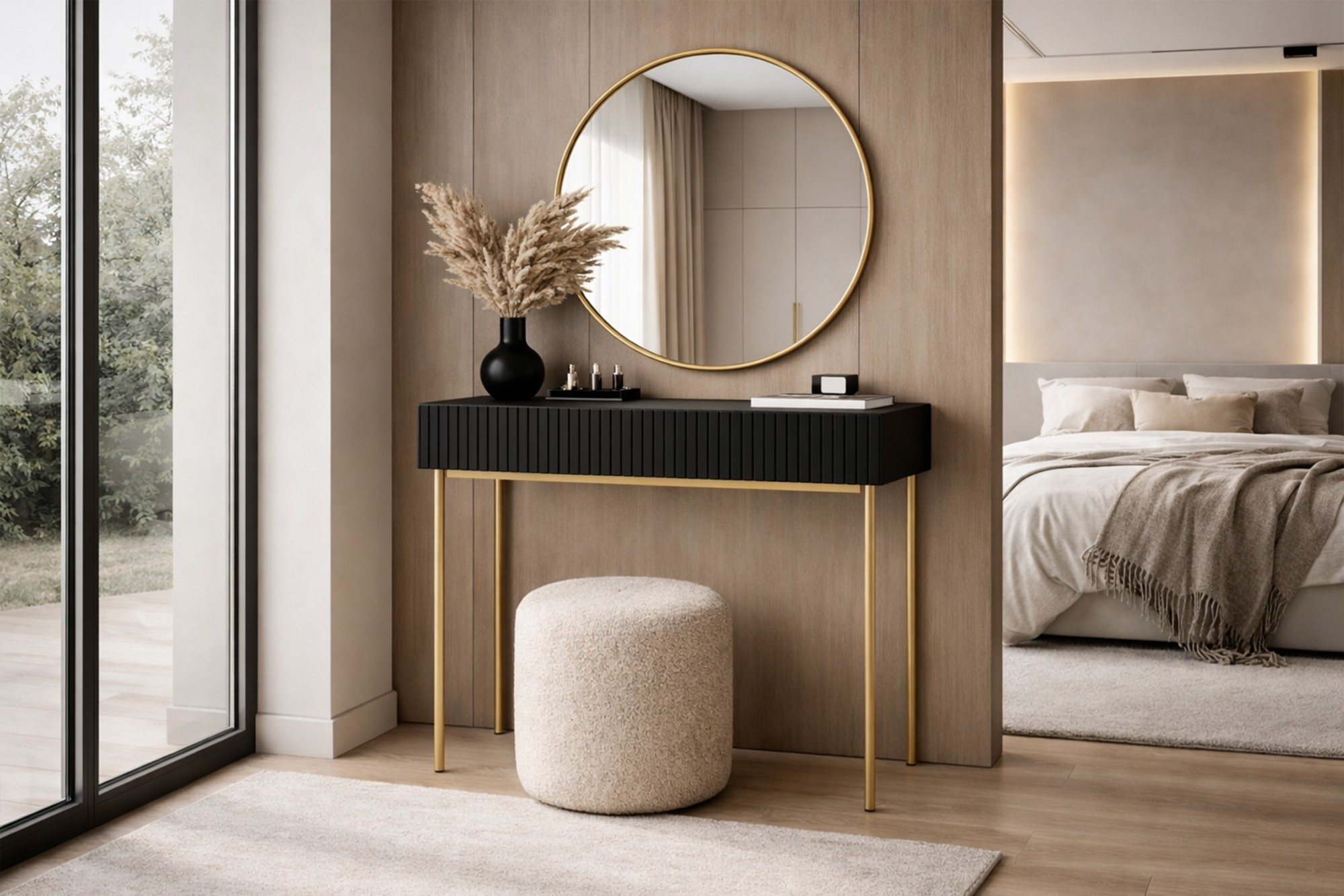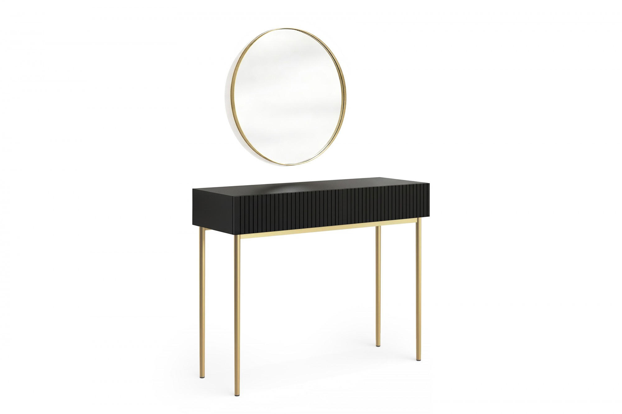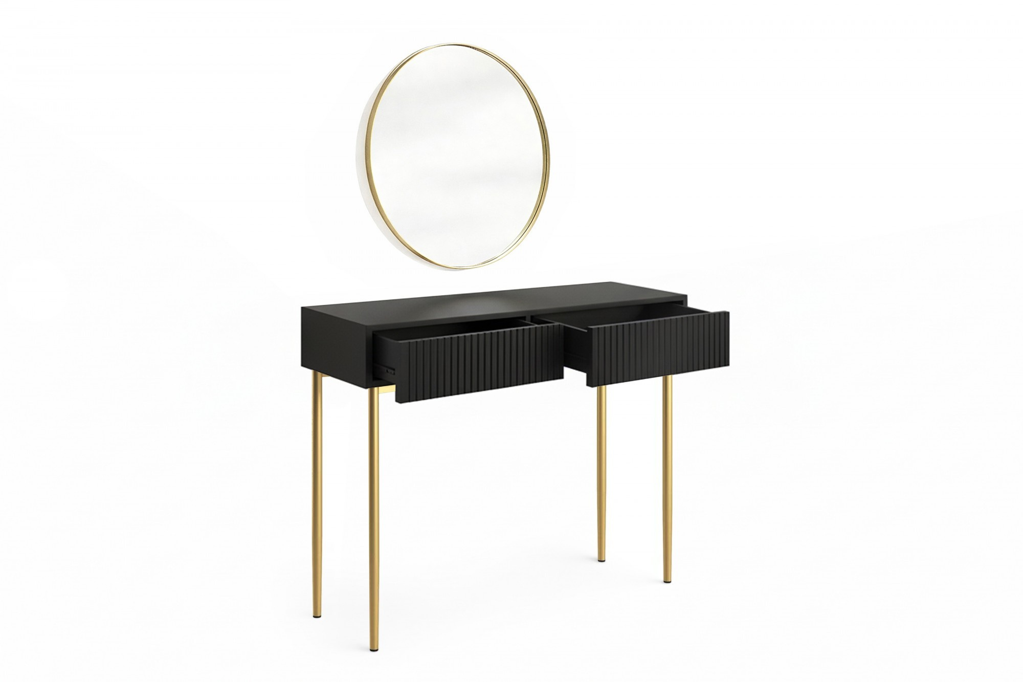 NICOLE TOALETKA 100 2SZ - černý mat / zlatý rám + NICOLE ZRCADLO 60 - zlaté