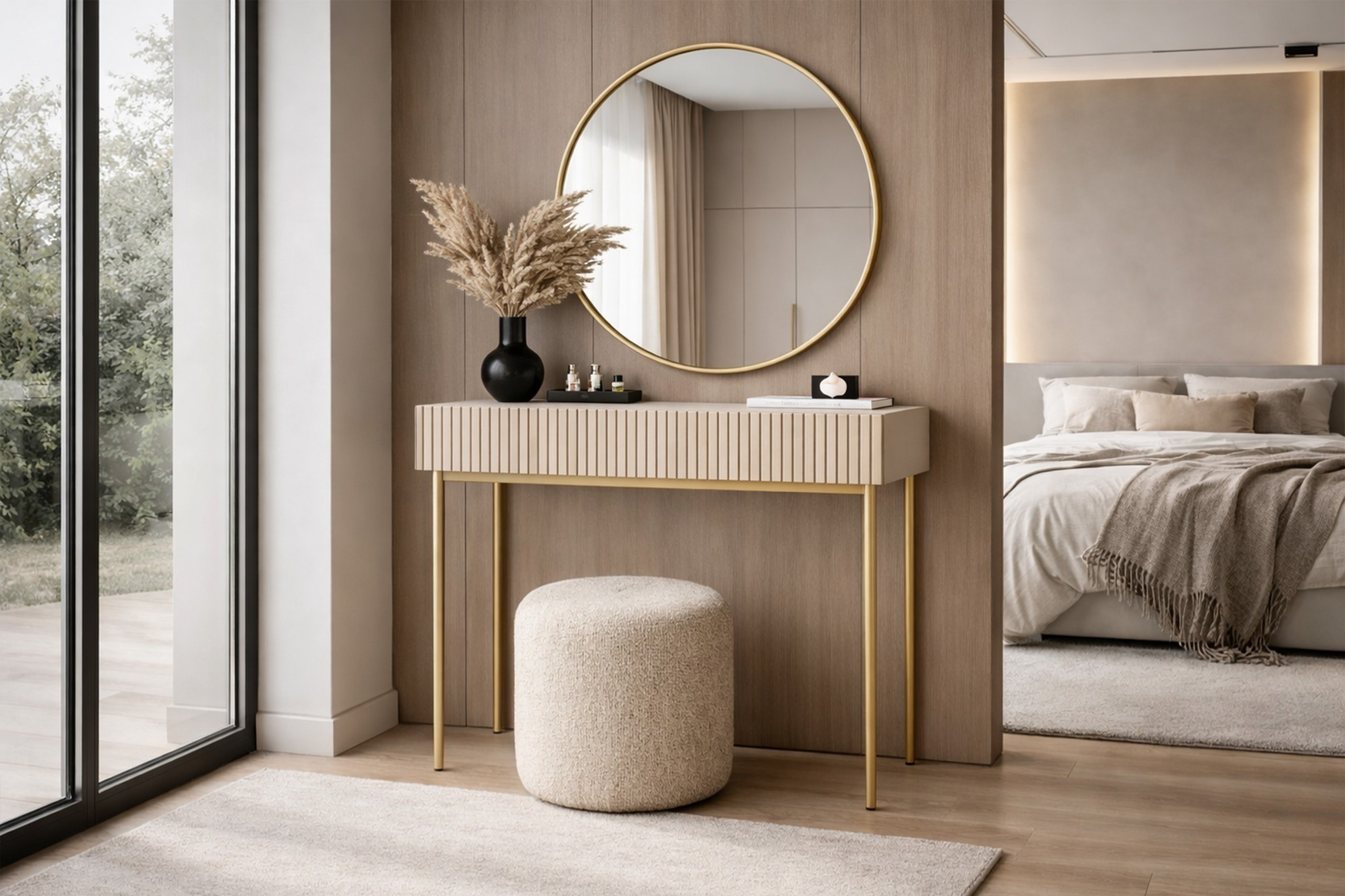 NICOLE TOALETKA 100 2SZ - kašmír / zlatý rám + NICOLE ZRCADLO 60 - zlaté
