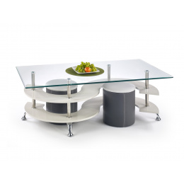 lavice s pufy, rozměry: 130/70/42 cm, materiál: sklo / lakovaná MDF / chromovaná ocel / PVC, barva: jasan / tmavý jasan