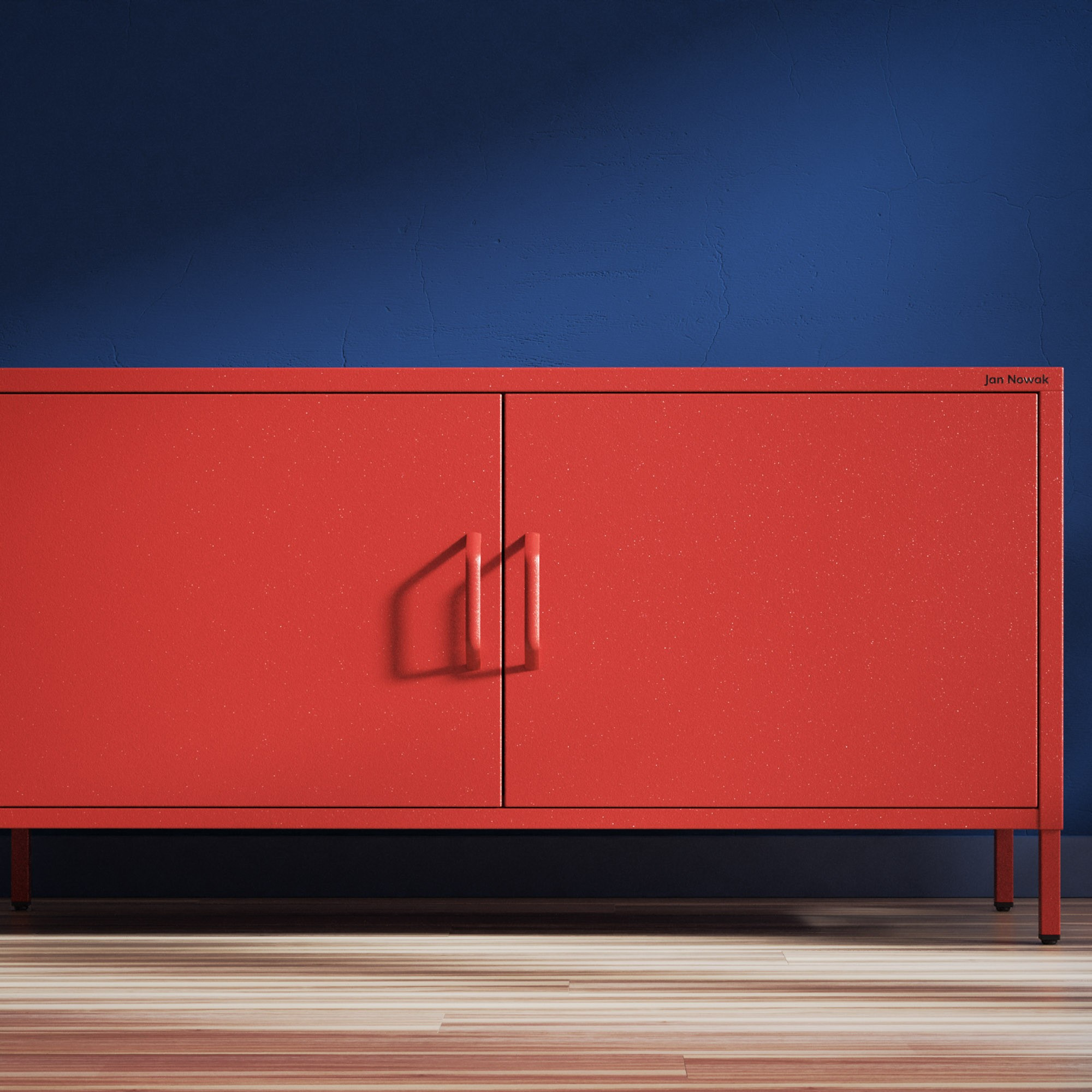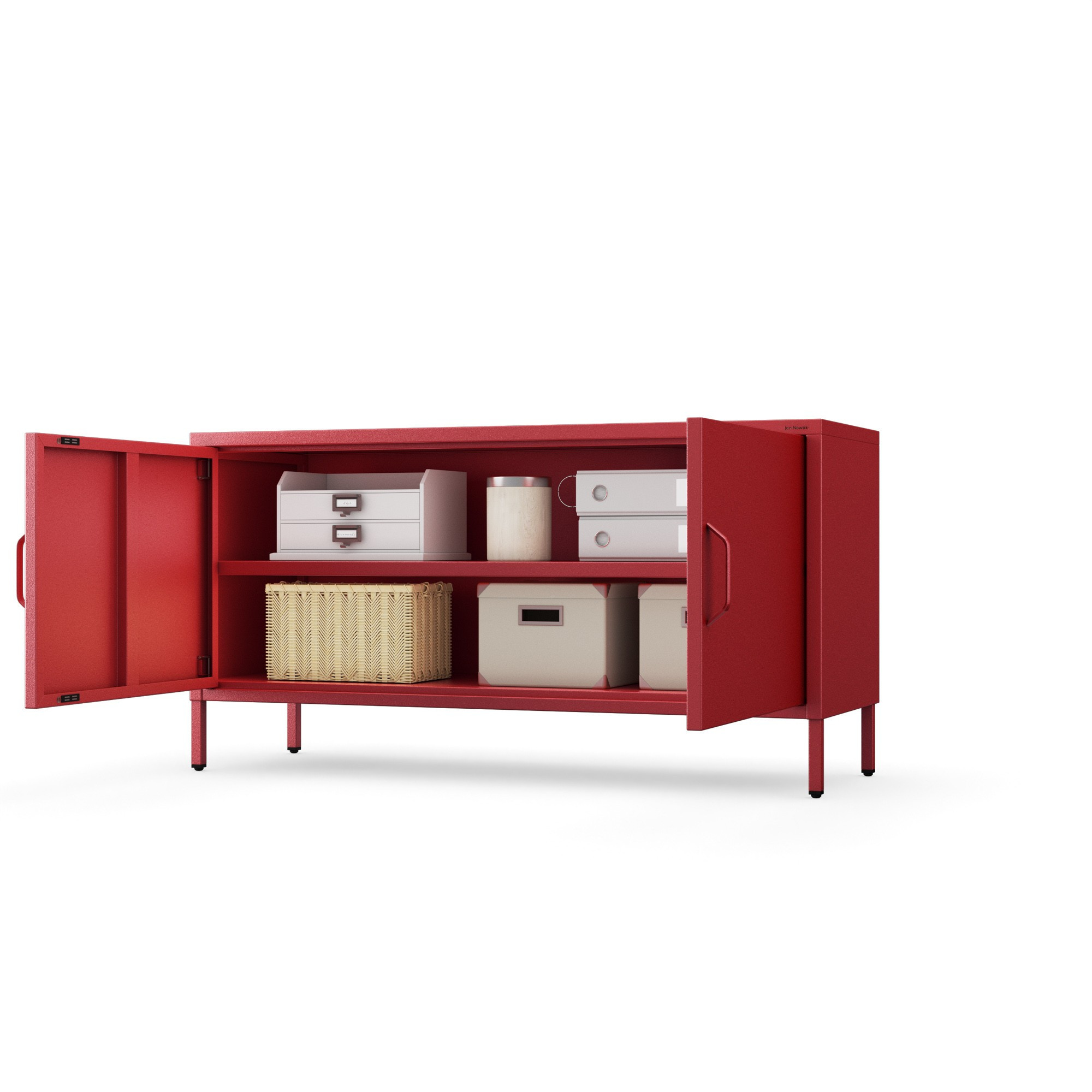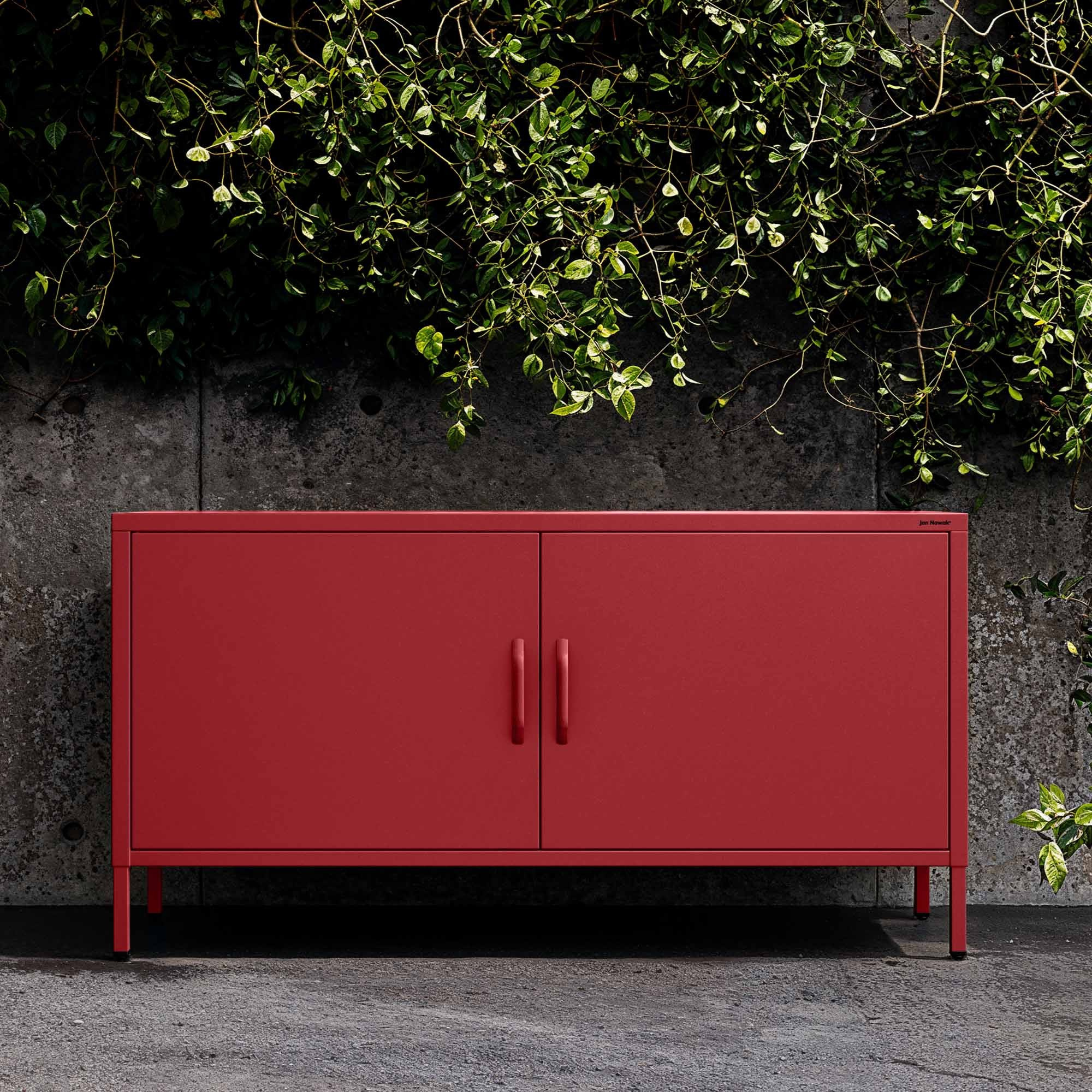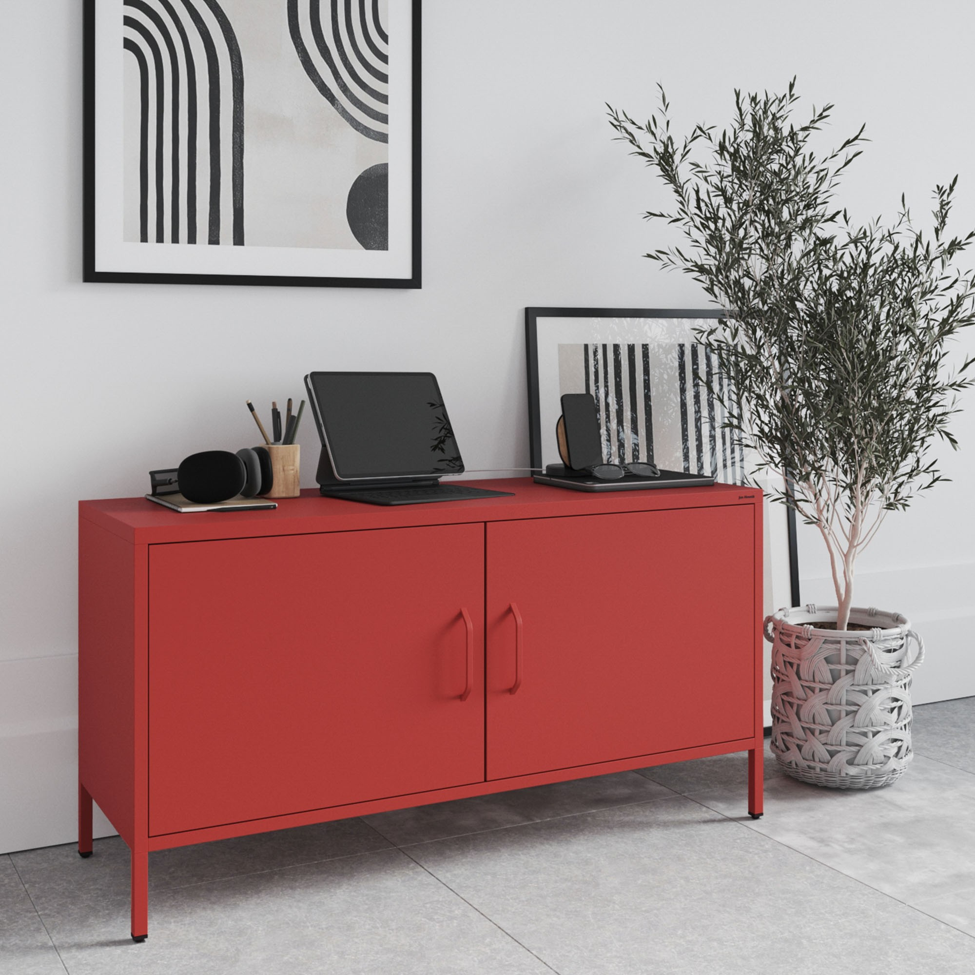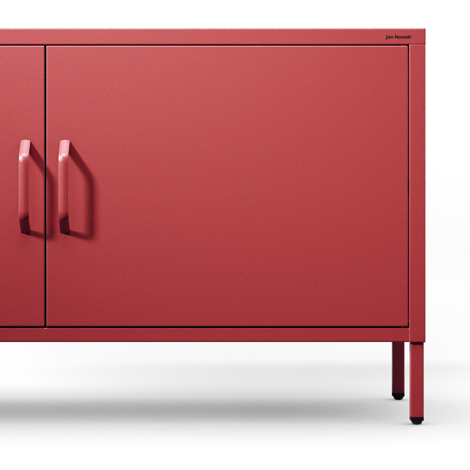 Nízká kovová skříňka na nožkách Moderní červená ROSA 1150 x 595 x 400 mm