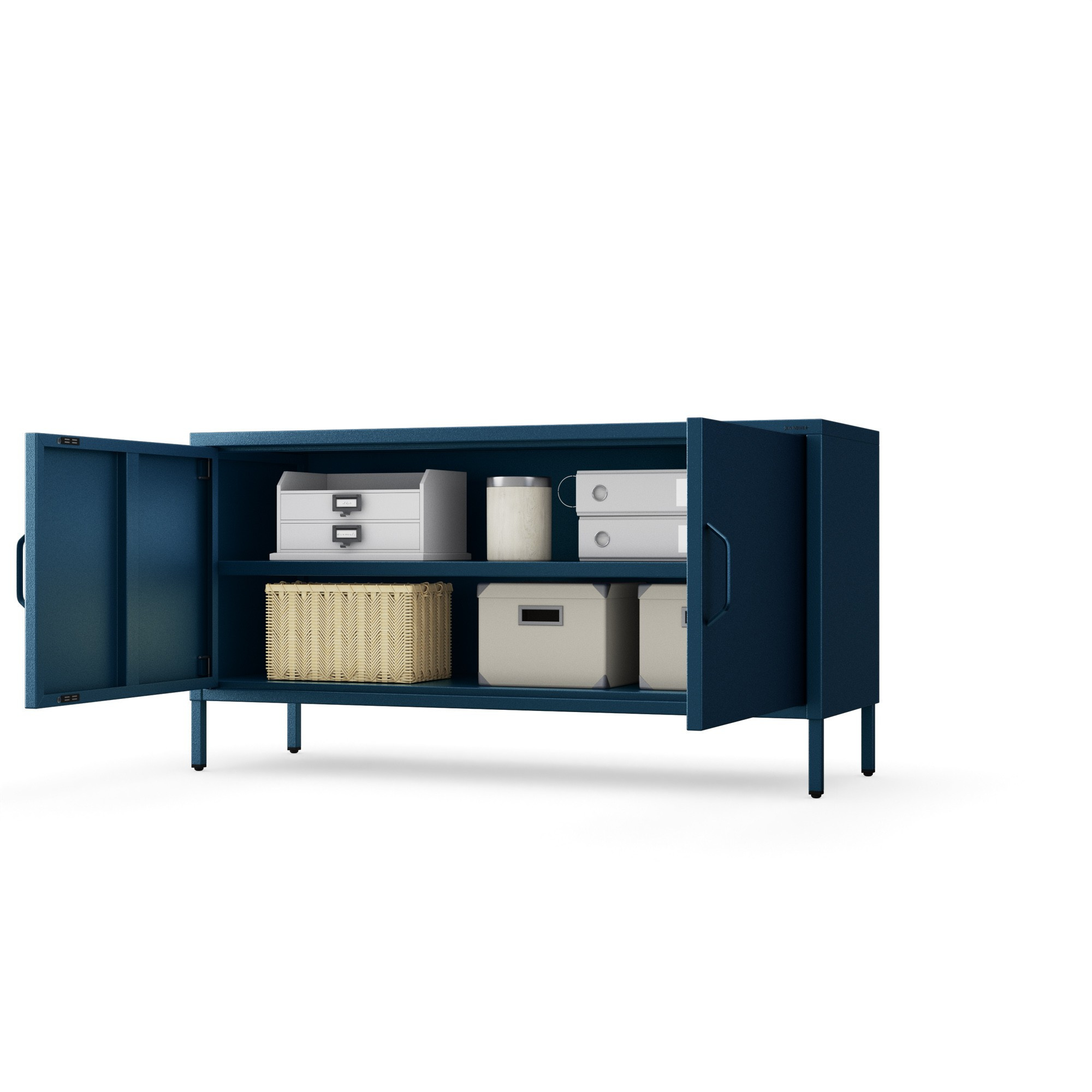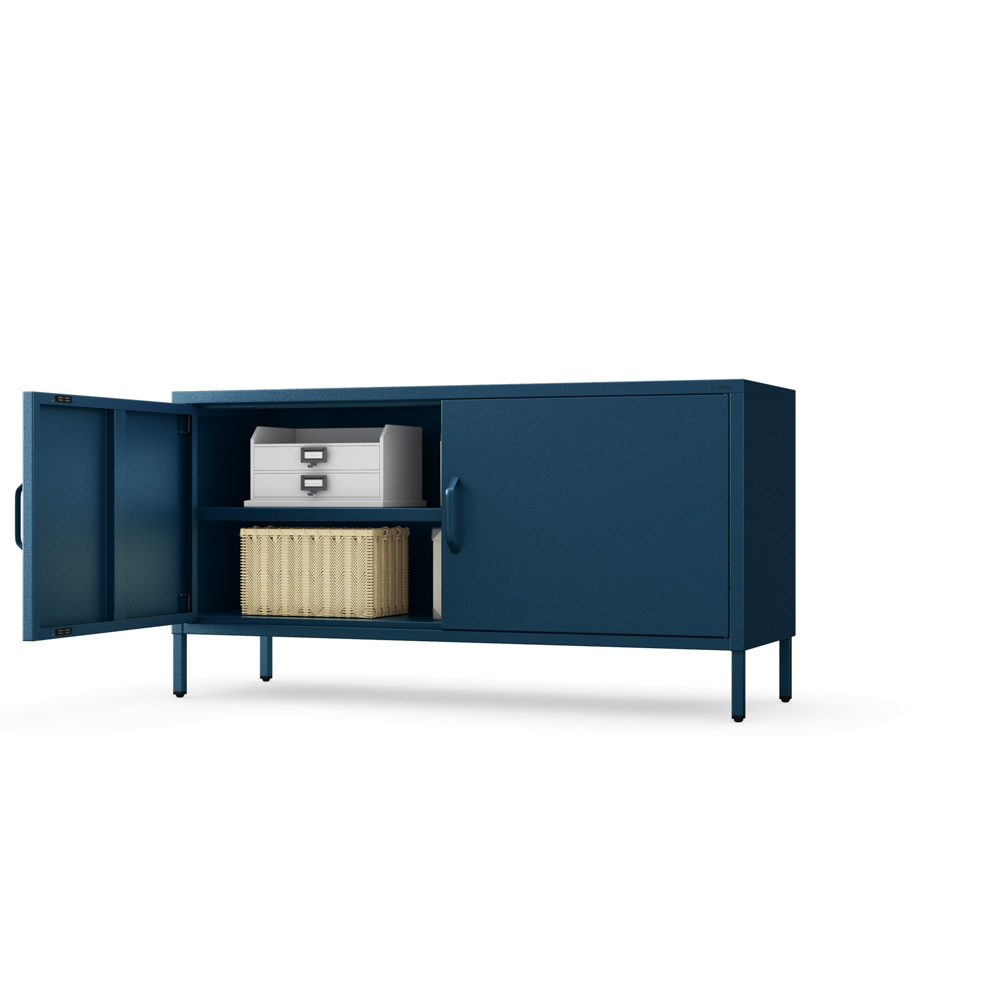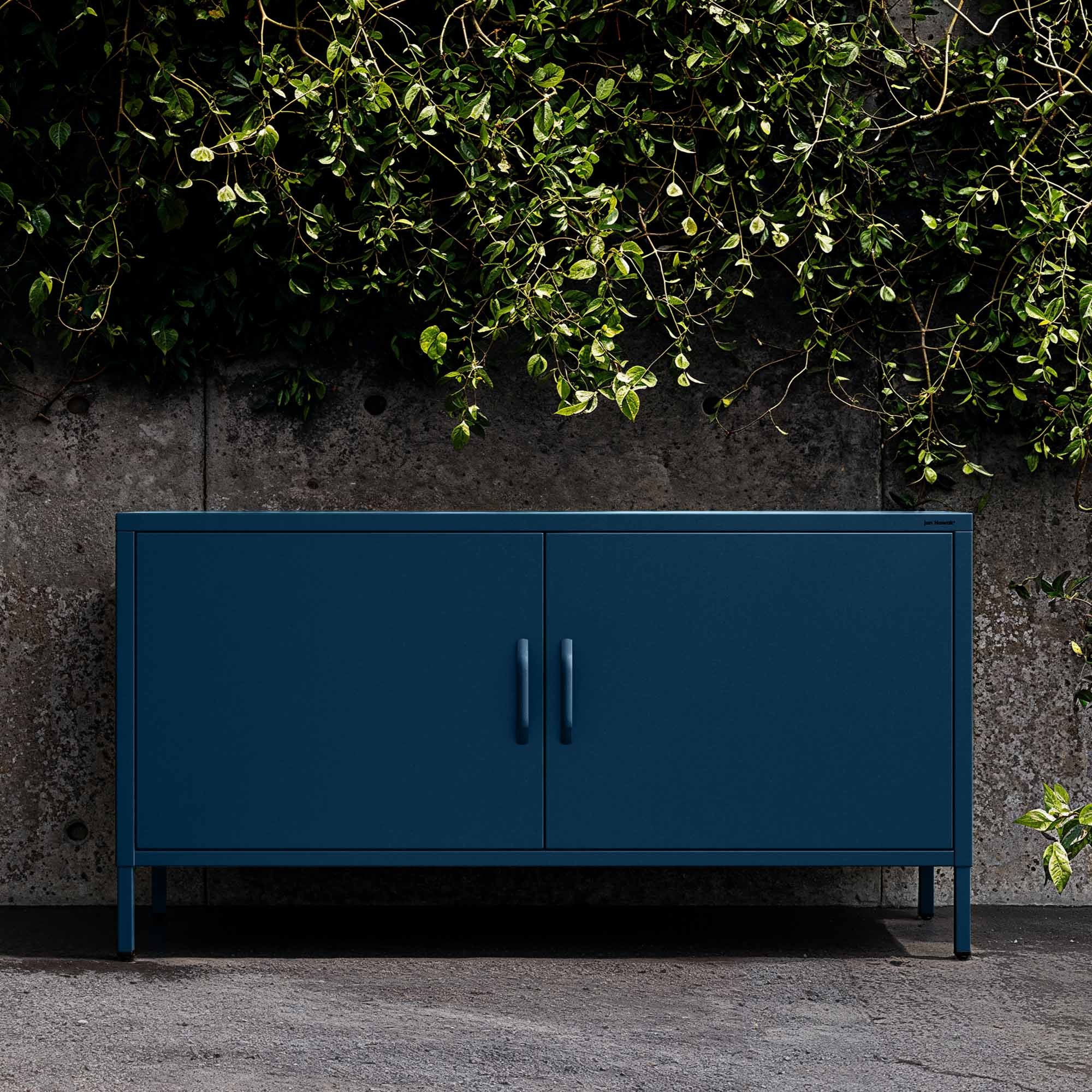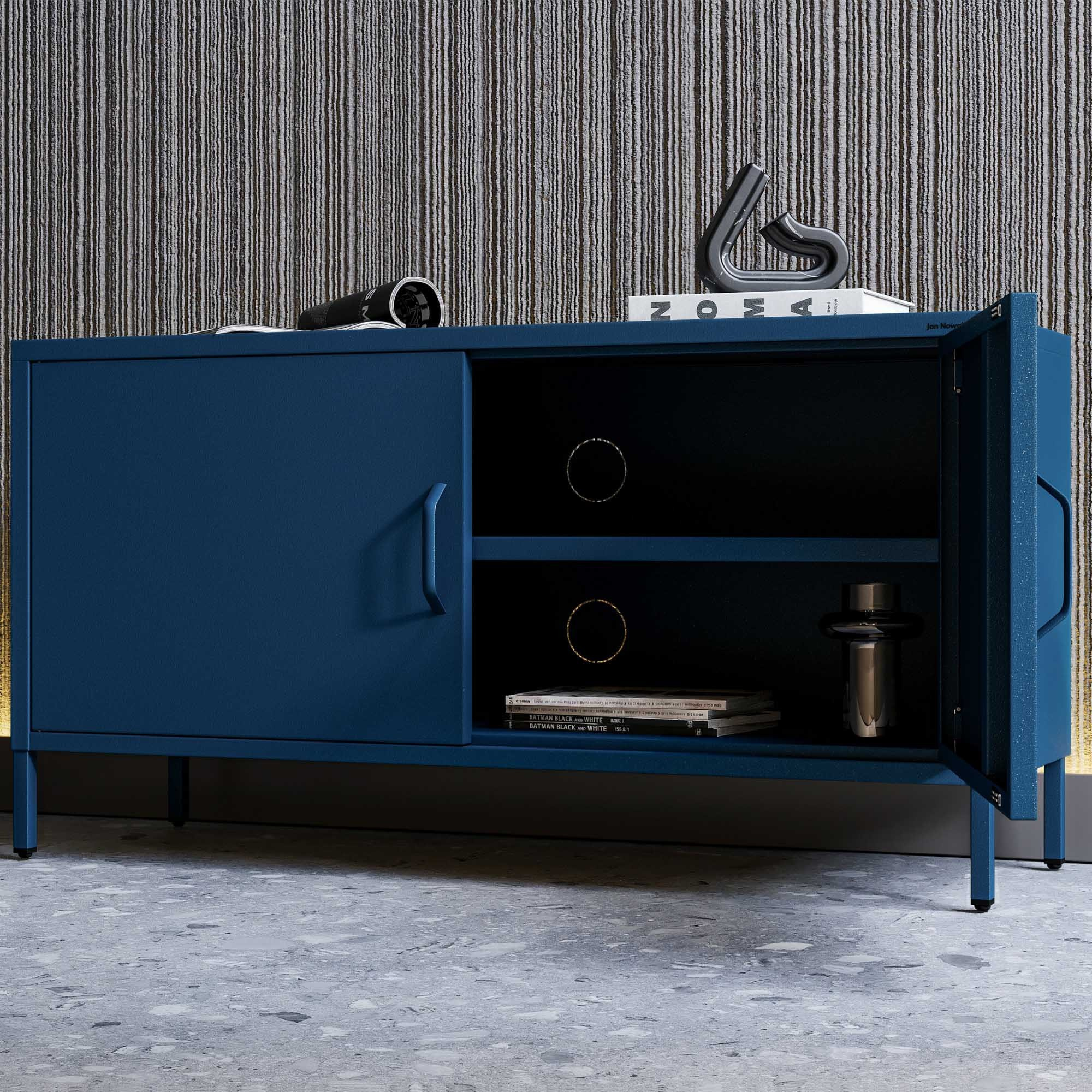 Nízká kovová skříňka na nožkách modrá Moderní ROSA, 1150 x 595 x 400 mm