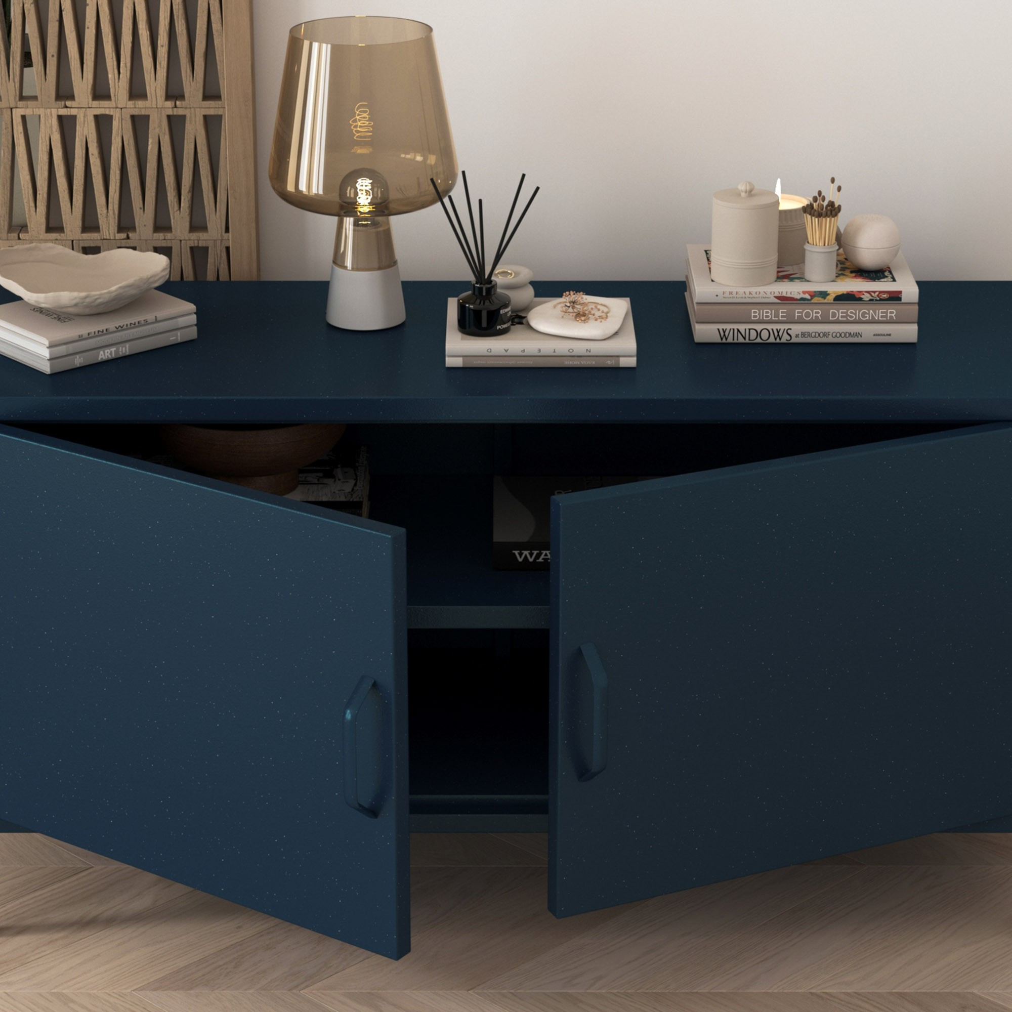 Tmavě modrý odstín barvy Sparkling Brilliance™ je elegantní a nadčasový. Skvěle se hodí do moderních, industriálních, glamour i eklektických interiérů. Ať už máte rádi minimalismus nebo preferujete bohaté dekorace, skříňka ROSA se snadno přizpůsobí vašemu stylu a dodá mu osobitý nádech.