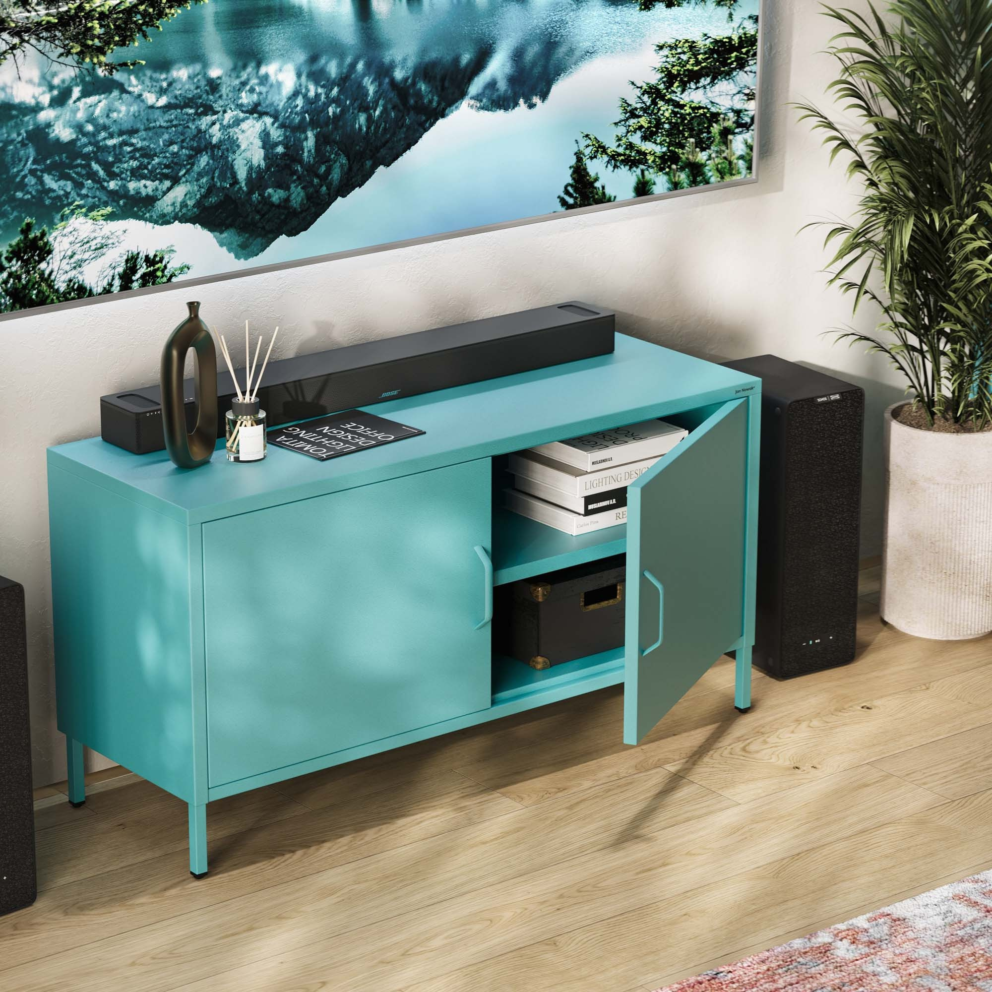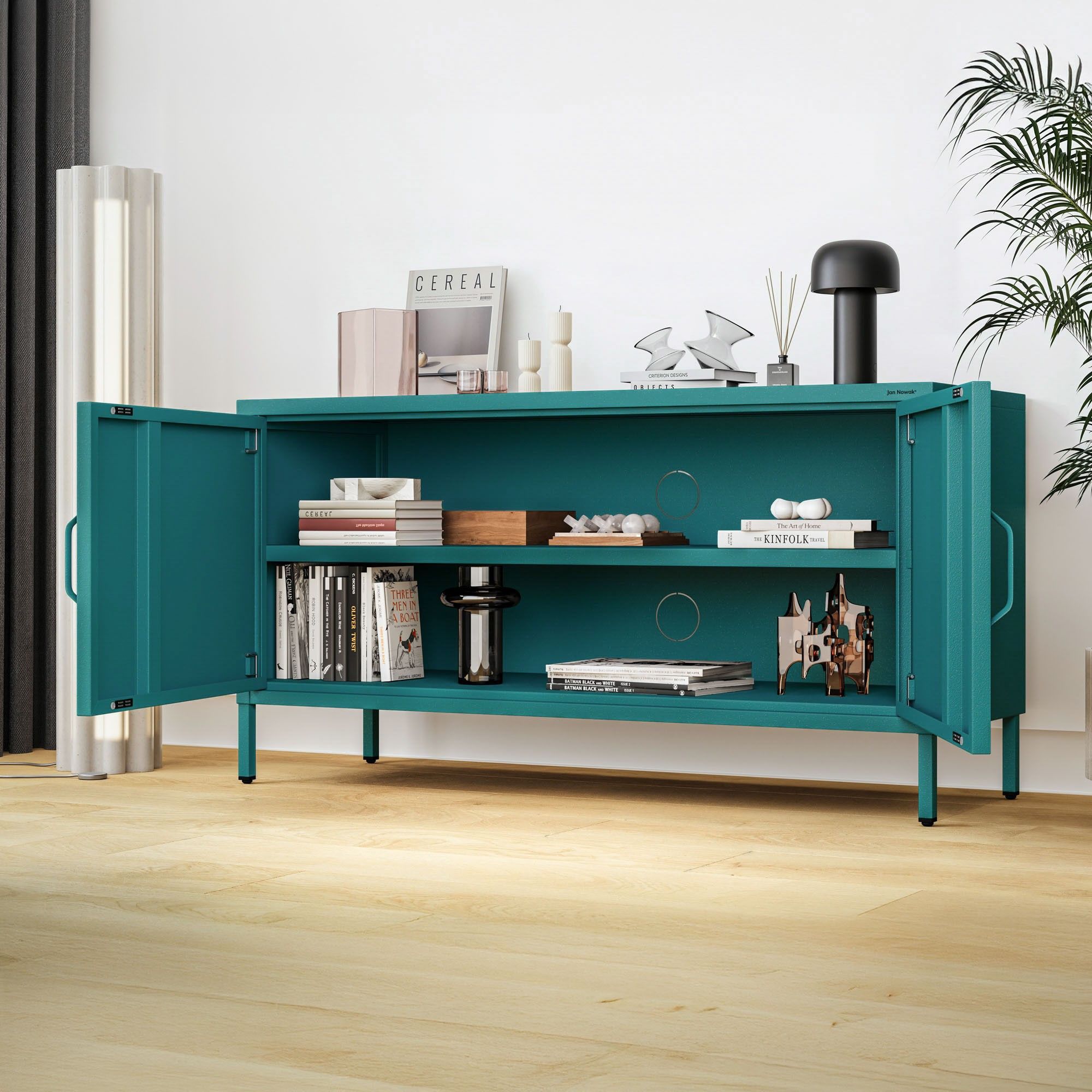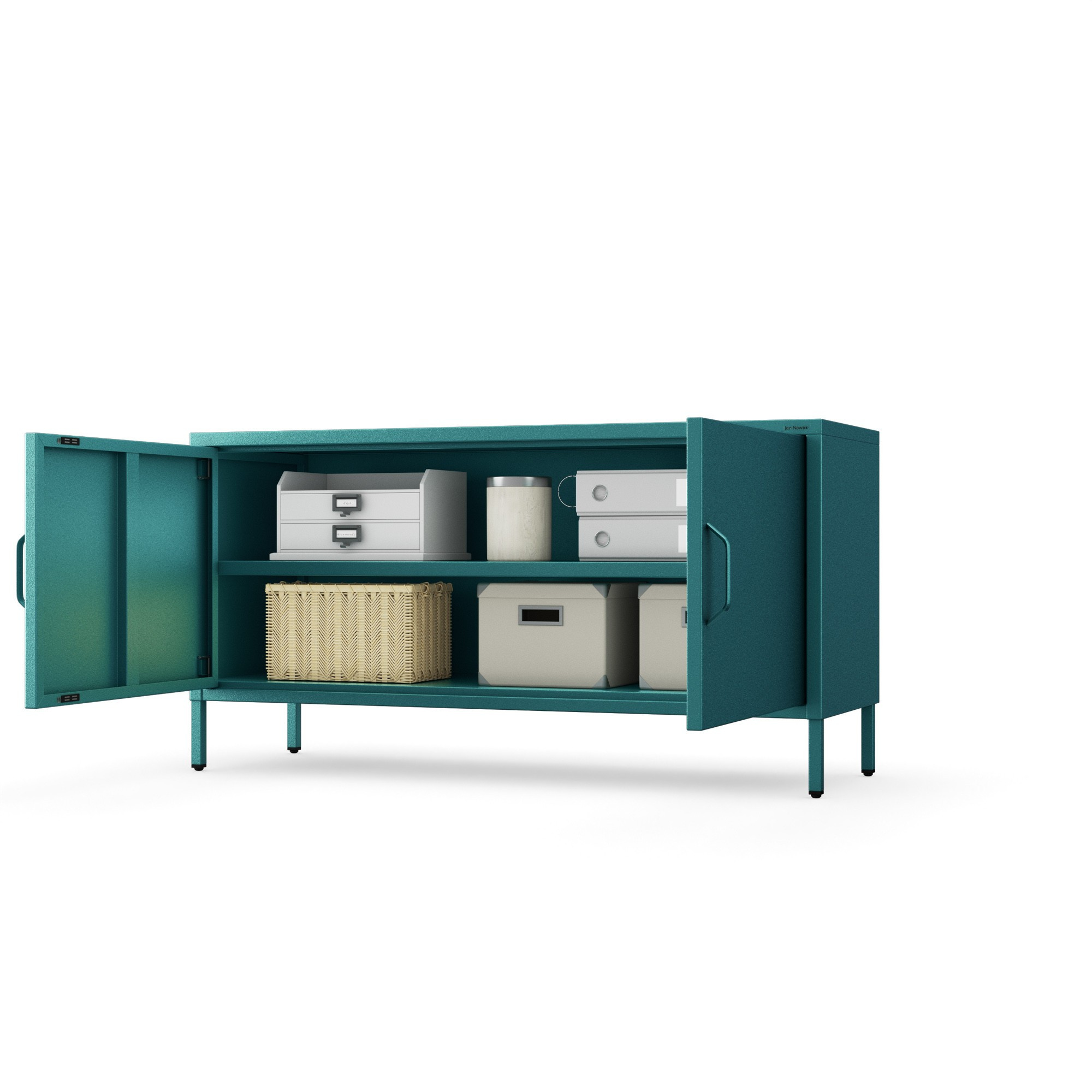 Nízká kovová skříňka na nožkách mořská Moderní ROSA, 1150 x 595 x 400 mm