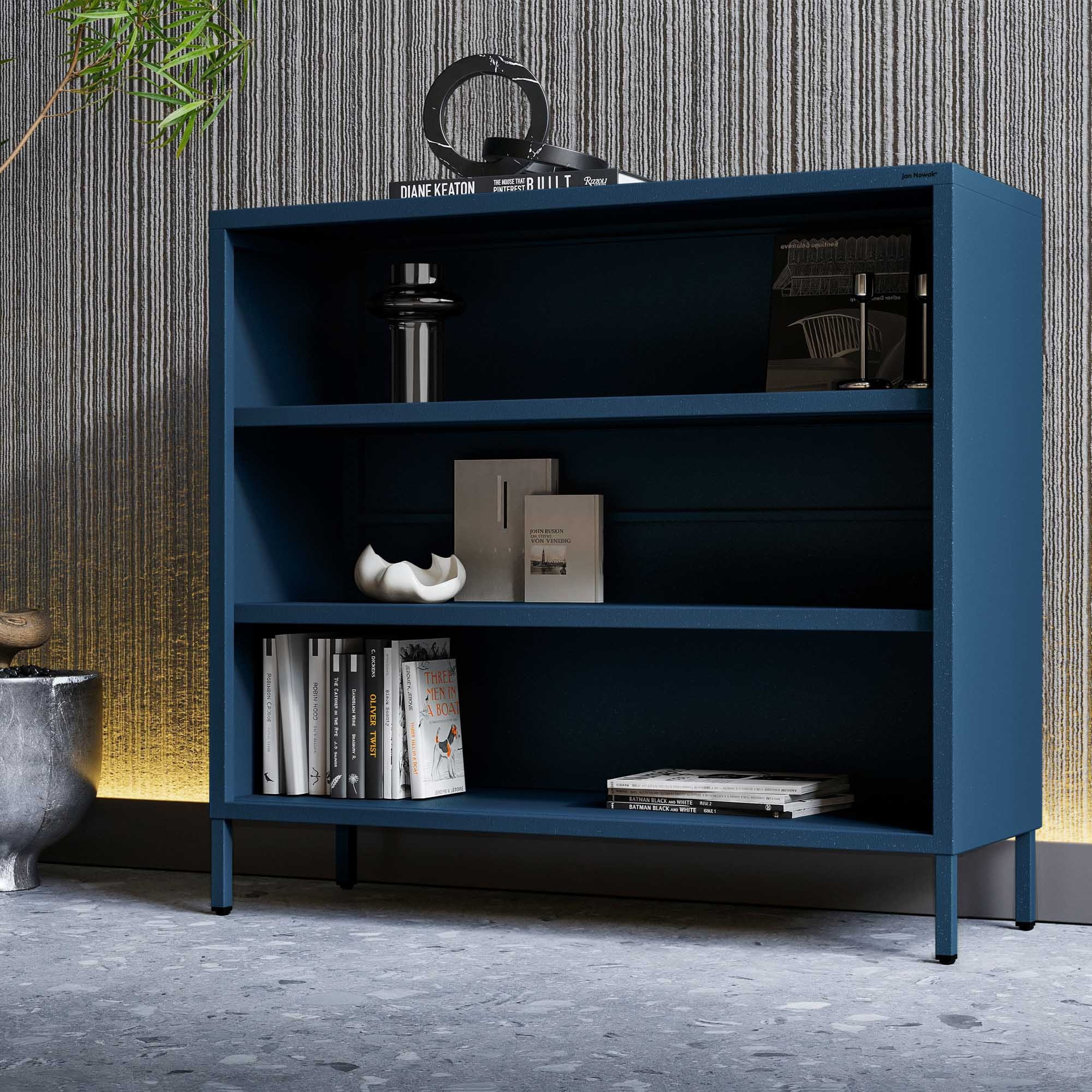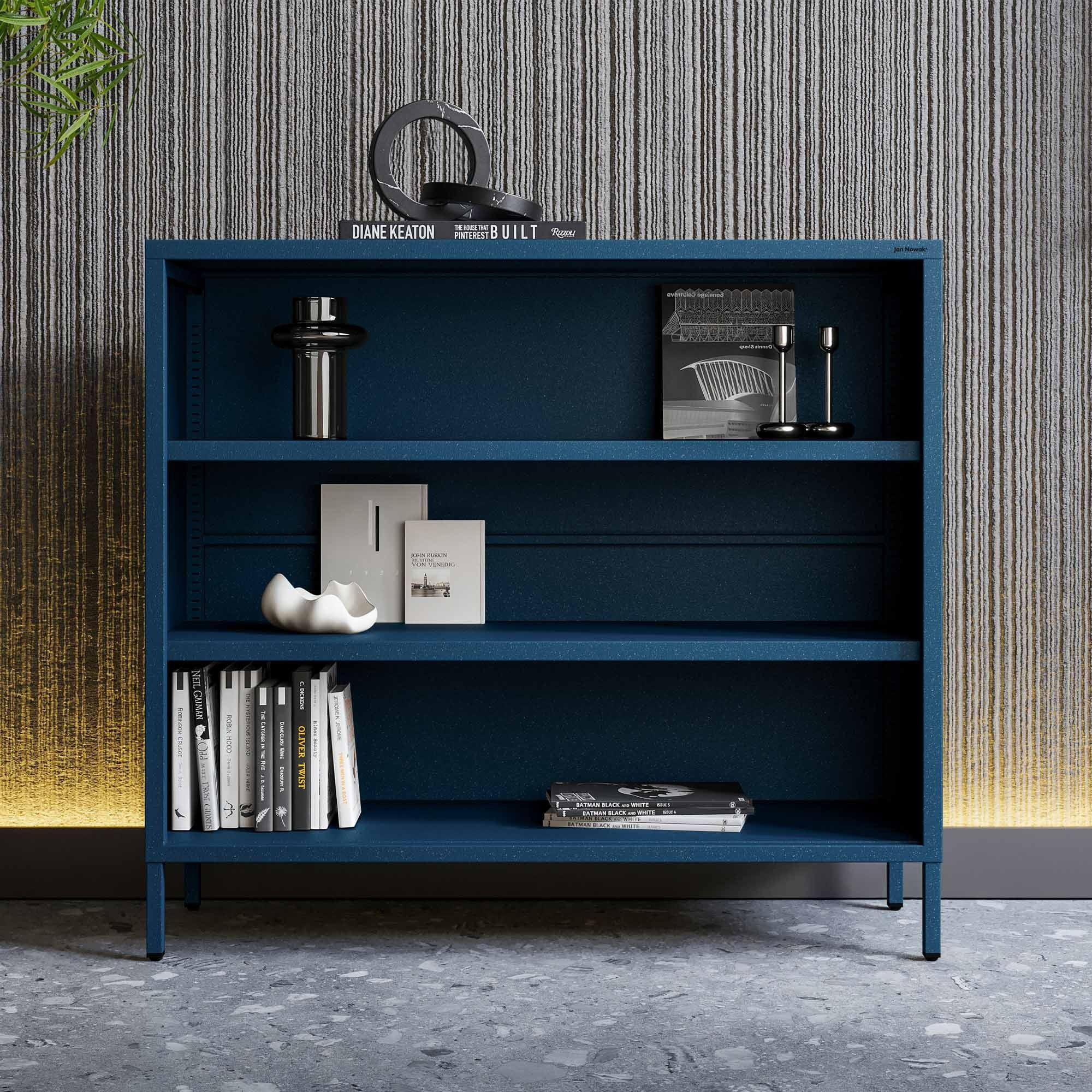 Nízký kovový regál modrý Moderní LUCA, 1000 x 900 x 350 mm