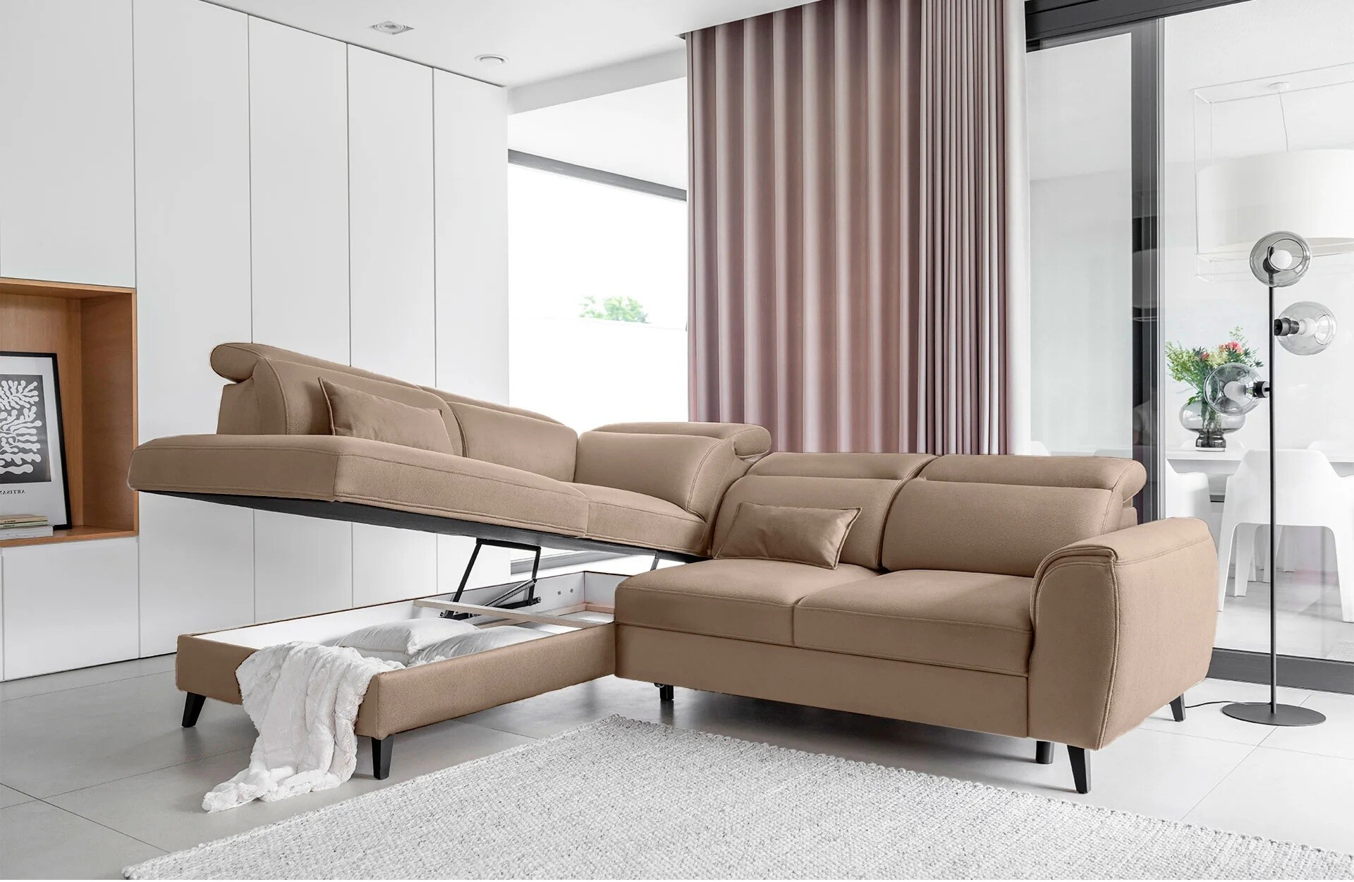 Tato sedací souprava není jen o vzhledu, ale také o funkčnosti. Díky možnosti rozkládání se snadno promění v pohodlné lůžko s plochou na spaní o rozměrech 120 x 195 cm. To je ideální pro hosty nebo pro ty, kteří si rádi dopřejí odpolední odpočinek. Navíc je vybavena praktickým úložným prostorem, který poskytuje dostatek místa pro uložení lůžkovin, polštářů nebo jiných potřebných věcí.