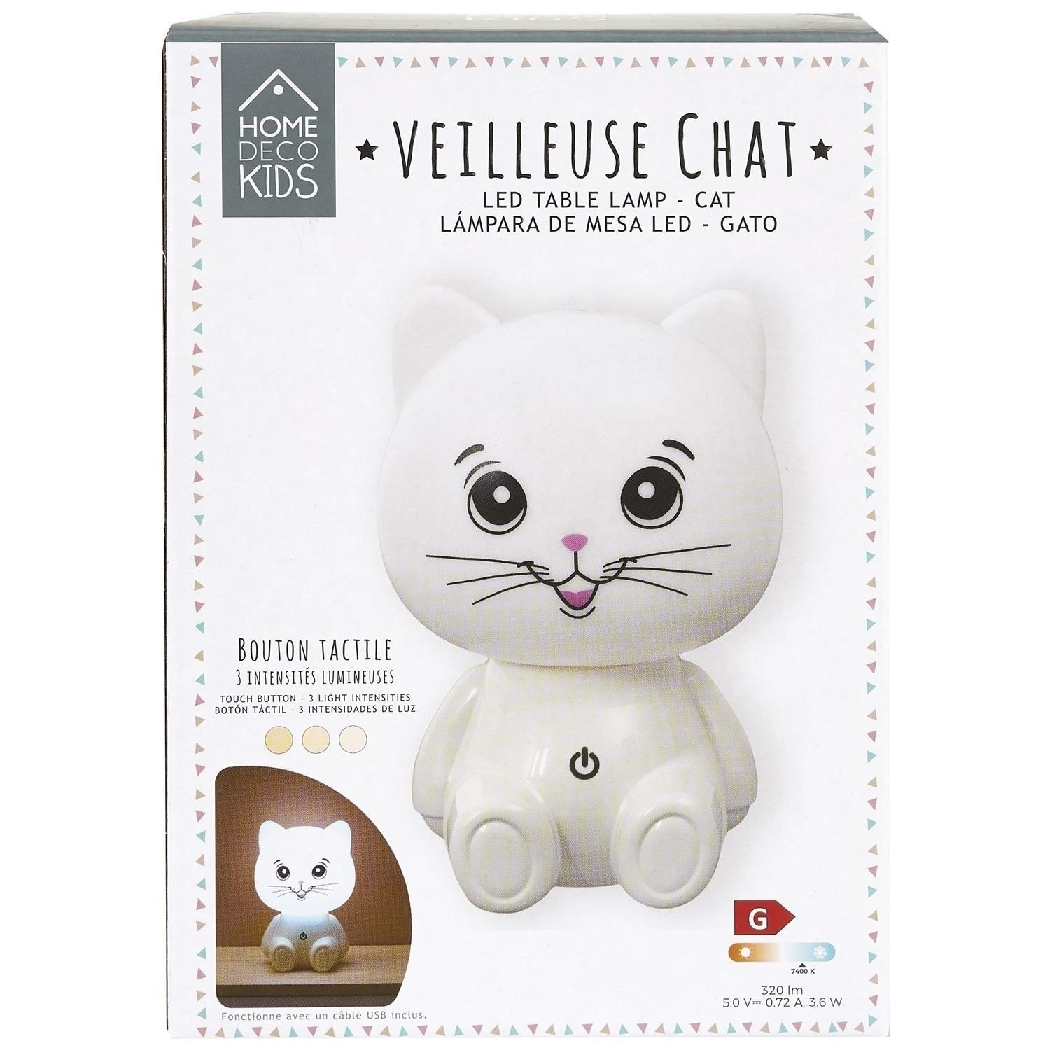 Noční lampička Kot USB LED bílá