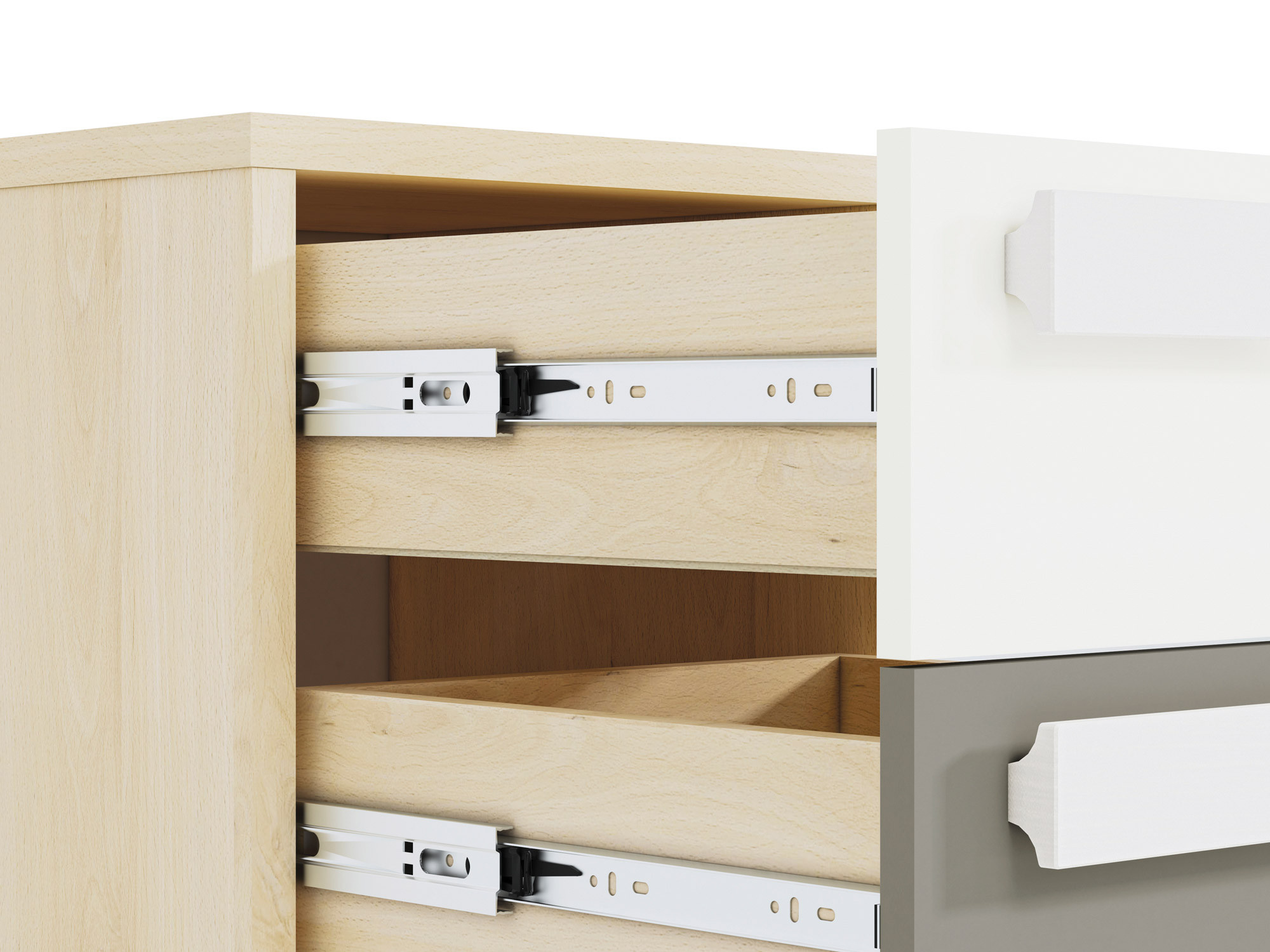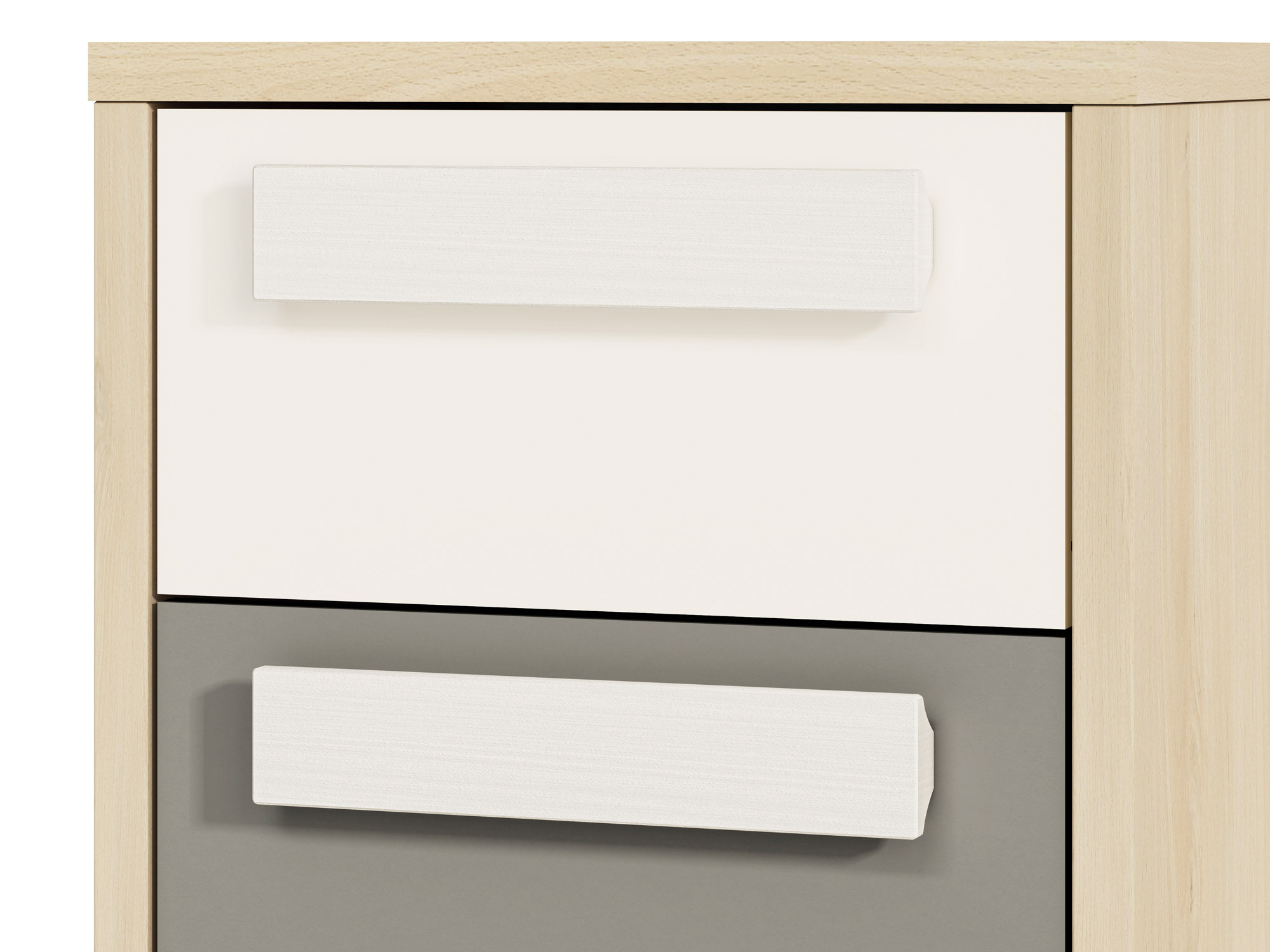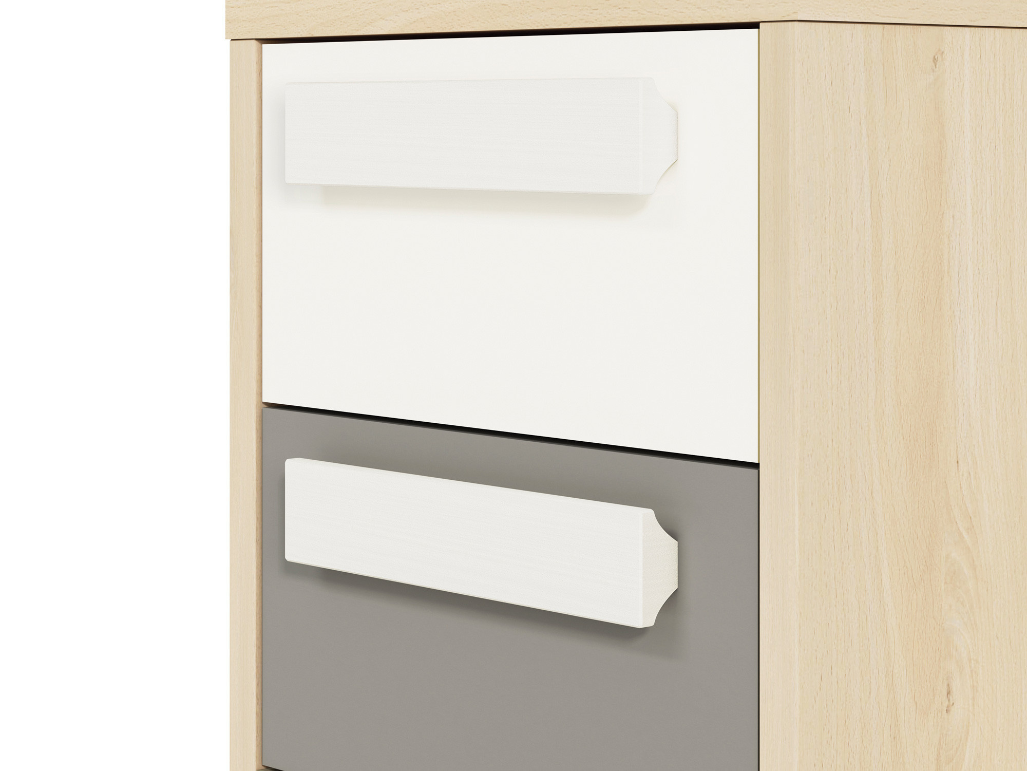 Velmi důležitou roli v dětském systému hraje jeho ergonomie. Náš noční stolek DROP 13 vznikl jako reakce na potřebu prostorného a funkčního nábytku do dětského pokoje. Vynikající laminace horní části našeho nábytku - zajišťuje odolnost proti poškrábání. Systém zásuvek s plným výsuvem zase pomůže pojmout všechny věci, které naše dítě potřebuje před spaním. DROP 13 lze použít také jako samostatný kus nábytku nebo jako dalšího pomocníka u stolu.