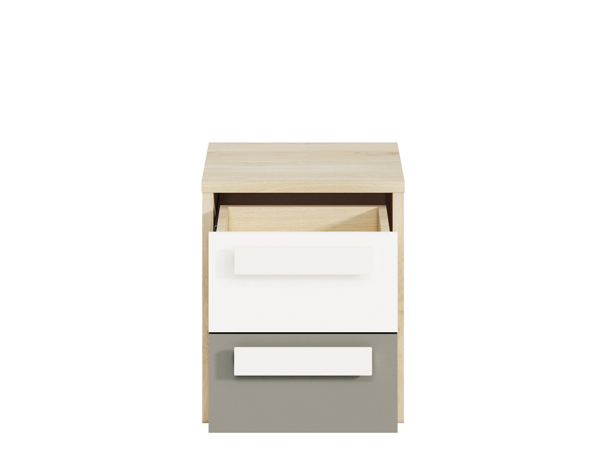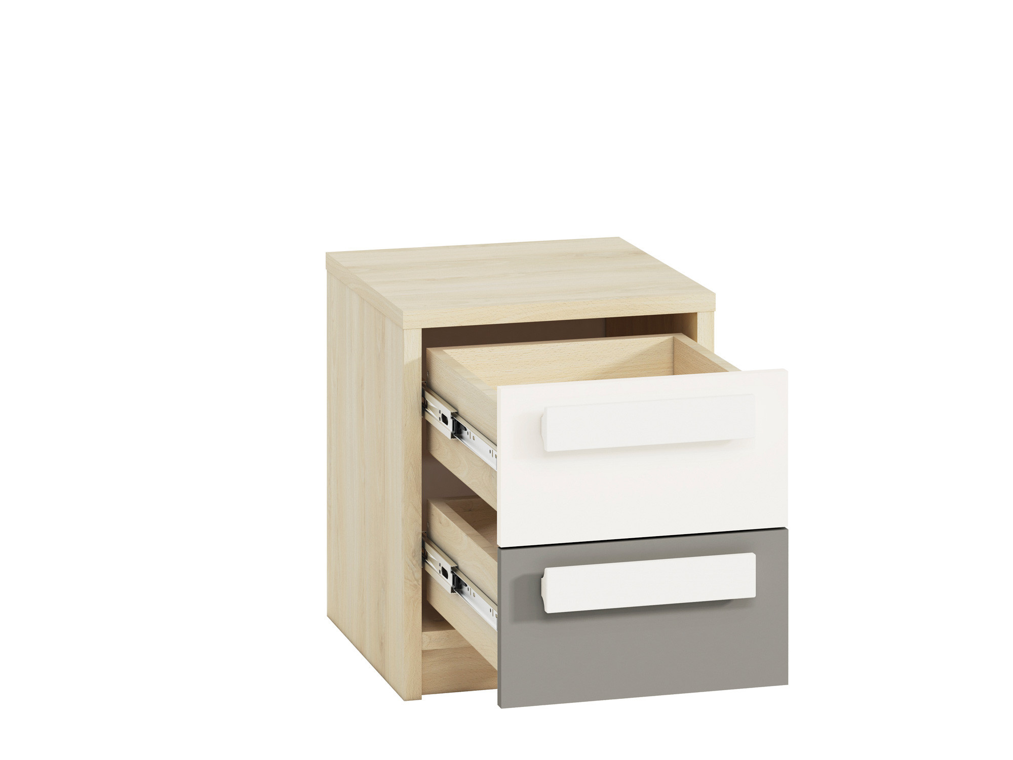 Noční stolek Drop 1301, Buk Fjord/Bílá/Šedá platina