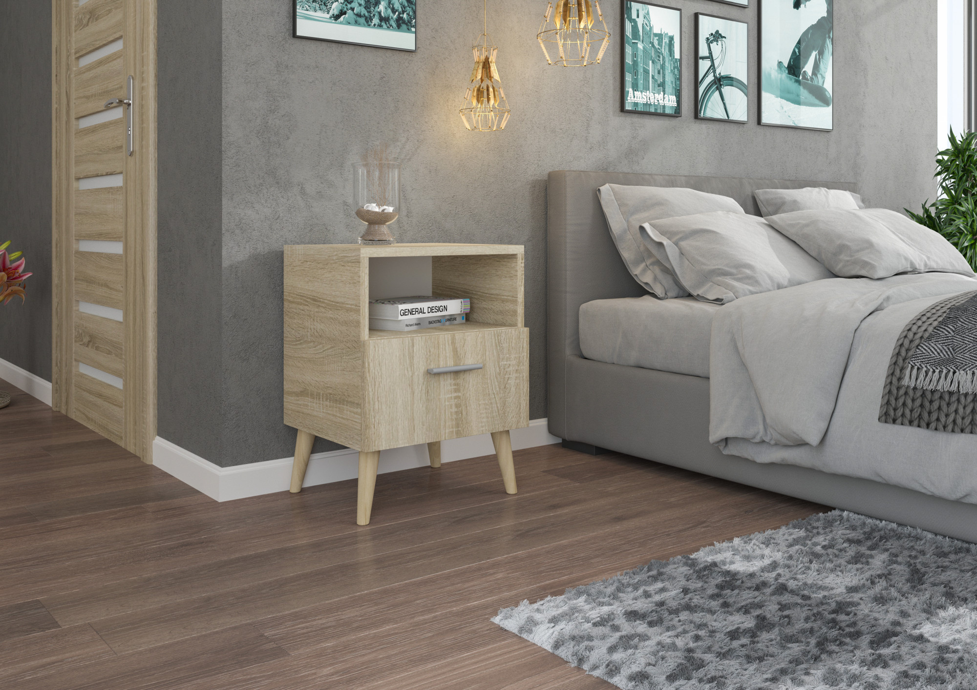 Noční stolek LOGAN je nábytek určený do ložnice nebo dětského pokoje. Je vybavena prostornou zásuvkou, která je ideálním místem pro uložení vašich drobností. Její moderní design zajišťuje, že se skříňka hodí do každého interiéru.