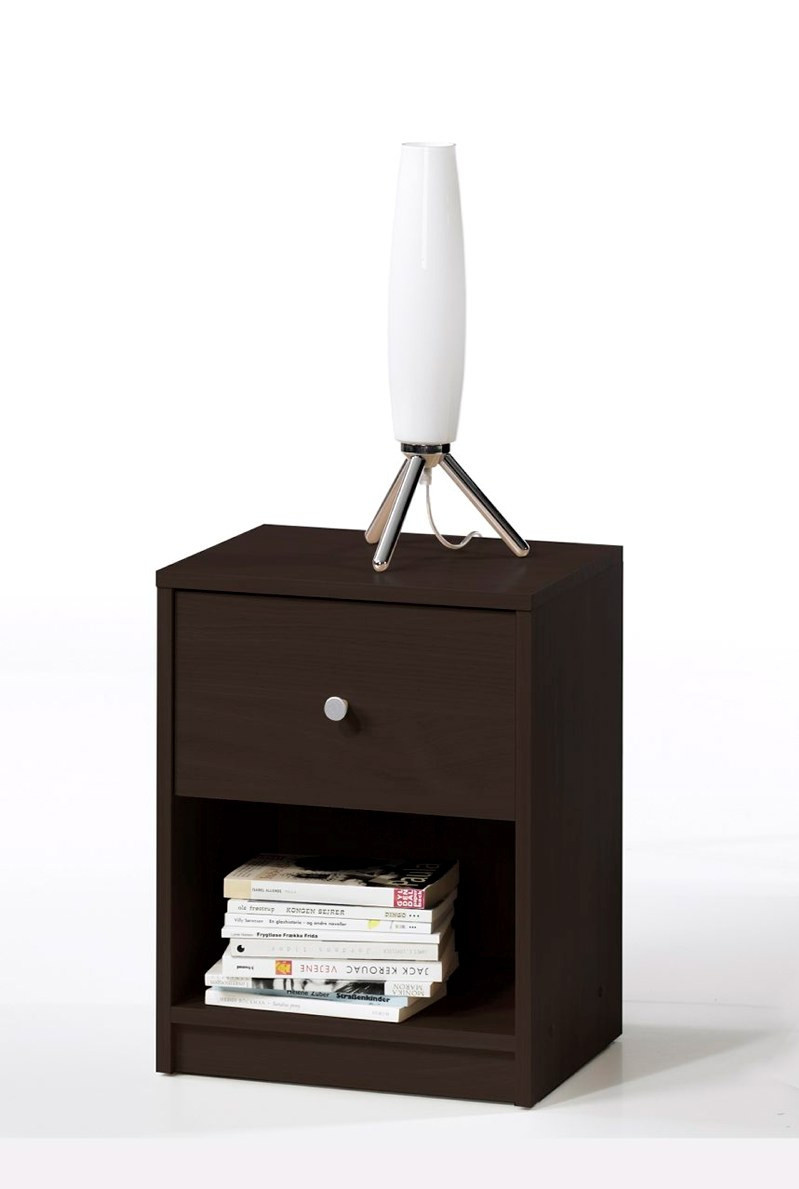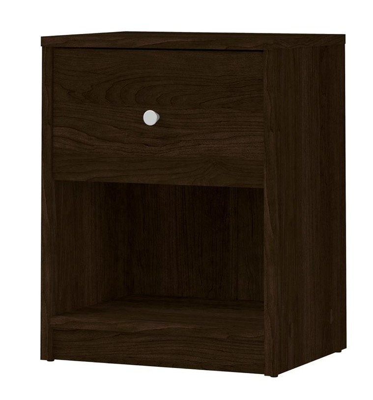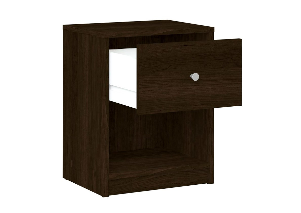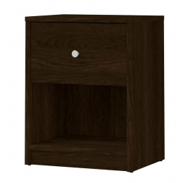Noční stolek May 70331 v odstínu káva. Šuplík je vybaven plastovou úchytkou ve stříbrné barvě. Povrch je odolný vůči poškrábání. Dodáváno v demontu.