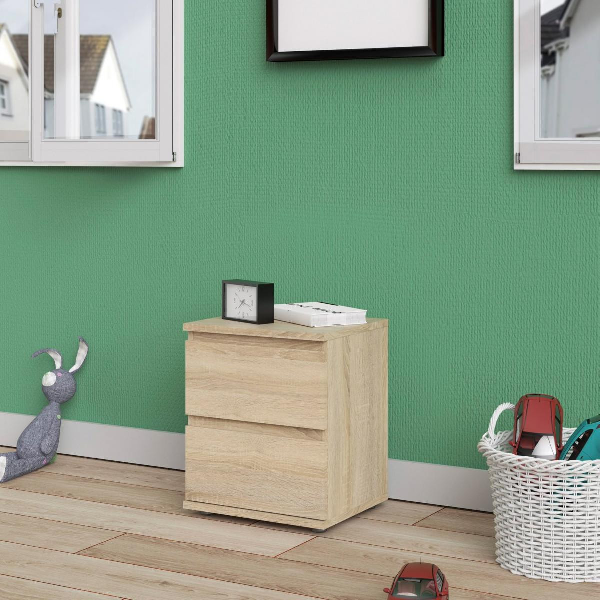 Noční stolek je nezbytným vybavením každé ložnice, dětského nebo studentského pokoje i pokoje pro hosty. Je nepostradatelným společníkem u postele a poskytuje úložný prostor pro vše, co potřebujete mít na dosah ruky a také odkládací prostor např.na lampičku nebo budík. Noční stolek Nibby Vaši ložnici krásně doplní a svoji funkci bude plnit na výbornou. Stolek je vyrobený z lamina, které se snadno udžuje. Při výrobě je kladen důraz na ekologii takže je vyráběný v souladu s ohledy na životní prostředí. Stolek je dodávaný v demontu a součástí balení je montážní návod včetně potřebných spojovacích prvků. Vyobrazené dekorace nejsou v ceně.