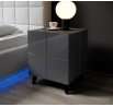 Noční stolek REJA ( 2 ks. Rozměry s nožičkami: š/ž- 57,5cm/46cm/45cm Rozměry bez nožiček: š/ž- 52,5cm/46cm/45cm Materiál Boky a horní deska: MDF deska frézovaná v lesku Čela/desky: MDF deska frézovaná v lesku Ostatní prvky: laminovaná dřevotříska Úchyty: žádné, čela končí nad horní deskou Nožičky: černý plast nebo osvětlení soklu: lepicí páska připevněná na soklu Dostupné barvy: bílá, modrá