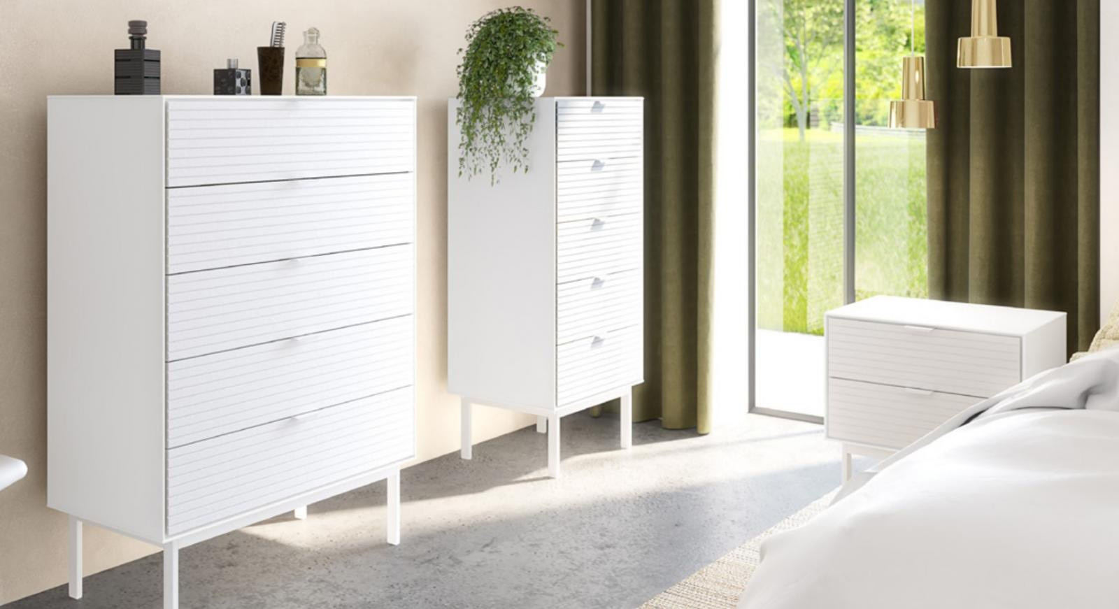 Nádherný design v nejvyšší kvalitě za příznivou cenu. Tento stylový nábytek se severským nádechem navrhnul Morten Georgsen, jeden z předních designerů nábytkářského průmyslu. Moderní řada Sean nabízí noční stolky a komody vyrobené z kvalitních MDF desek a masivního dřeva s krásným drážkovaným povrchem. Zboží je dodáváno v demontu, součástí je schematický návod na montáž.