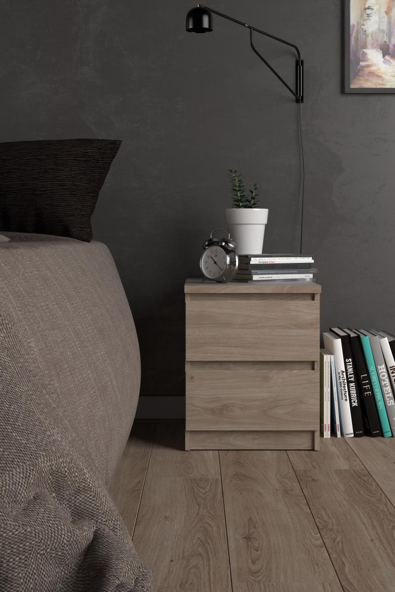 Noční stolek je nepostradatelným prvkem každé ložnice. Poskytuje prostor na lampičku, budík, mobilní telefon a další drobnosti, které potřebujete mít vždy na dosah ruky. Noční stolek Simplicity, je pro tyto účely skvělou volbou. Díky praktickým zásuvkám, budou všechny nezbytné drobnosti schované a ložnice bude stále hezky uklizená. Stolek je vyrobený z lamina, které se snadno udžuje a nabízíme ho v několika barevných provedeních. Je dodávaný v demontu a součástí balení je montážní návod včetně potřebných spojovacích prvků. Vyobrazené dekorace nejsou v ceně.