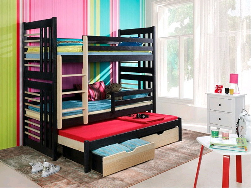 Dětská patrová postel ROLAND III pro 3 děti je vyrobena z kvalitního masivního borovicového dřeva. Součástí postele jsou i rošty. Cena postele je uvedena v přírodním provedení. Za barevné provedení je příplatek 330.- kč. Postel lze vyrobit na zakázku i ve Vámi požadovaném rozměru za příplatek, který Vám sdělíme dle Vašeho požadavku.