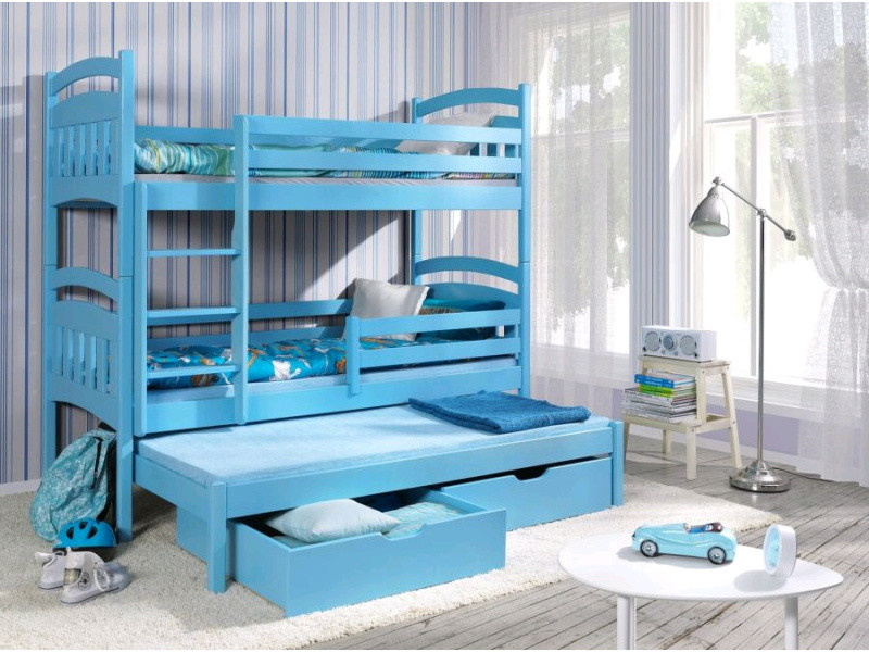 Dětská patrová postel JAKUB III pro 3 děti je vyrobena z kvalitního masivního borovicového dřeva. Součástí postele jsou i matrace. Cena postele je uvedena v přírodním provedení. Za barevné provedení je příplatek 330.- kč. Postel lze vyrobit na zakázku i ve Vámi požadovaném rozměru za příplatek, který Vám sdělíme dle Vašeho požadavku.