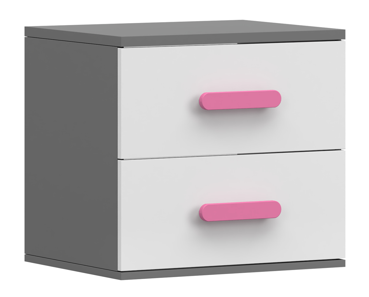 Noční stolek SMYK II - 22, Šedá/Bílá/Růžová