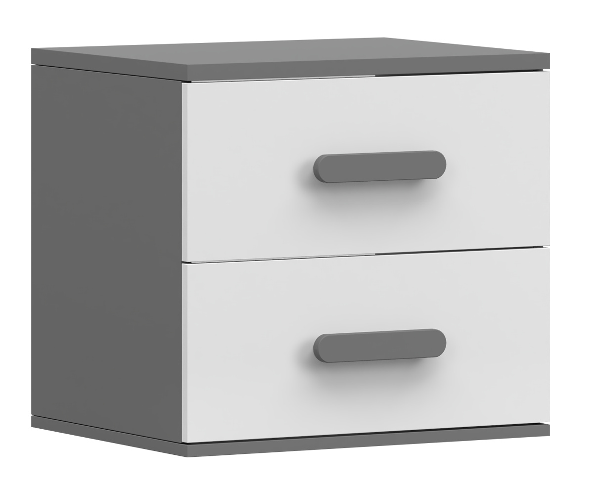 Tento moderní noční stolek SMYK II - 22 je skvělým doplňkem pro vaši ložnici. Kombinace šedé a bílé barvy dodá vašemu interiéru elegantní a stylový vzhled. Díky svému designu se hodí k různým druhům postelí a zařízení.