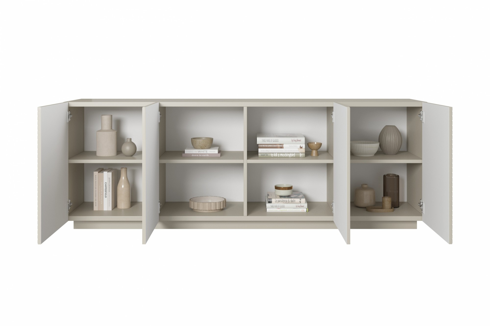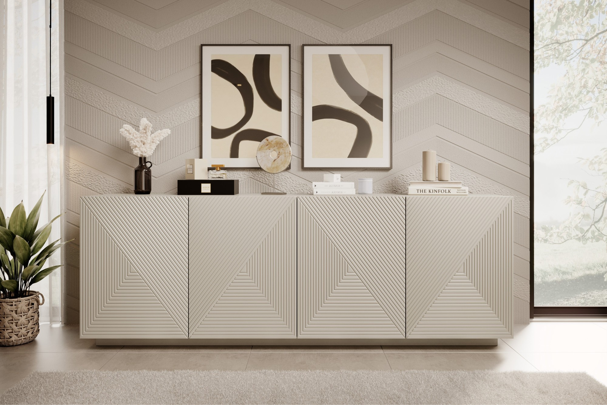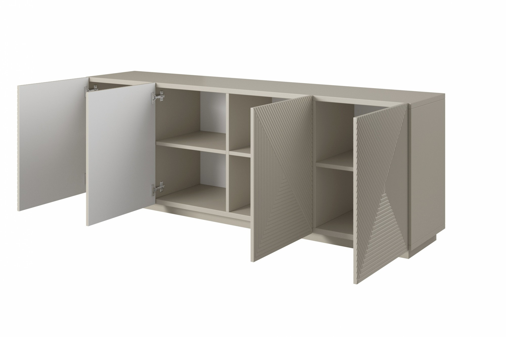 Moderní komoda Asha s drážkovaným čelem 200 cm - kašmír, Šířka: 200, Výška: 71, Hloubka: 43, Výška nožek: , Hloubka desky: , Montáž: