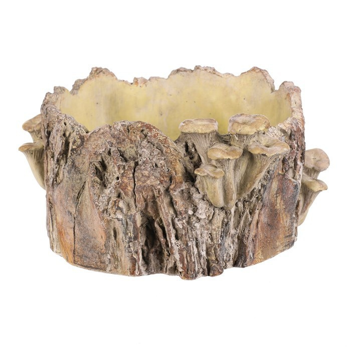 Pro všechny milovníky přírody tu máme unikátní obal na květiny z betonu, který napodobuje pařez porostlý houbami. Bude úžasným doplňkem pro vaši zahradu nebo terasu, přičemž se stane pevným a stabilním základem pro nejrůznější paletu rostlin.