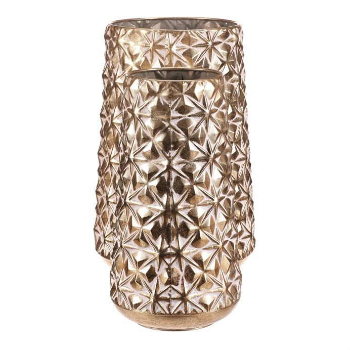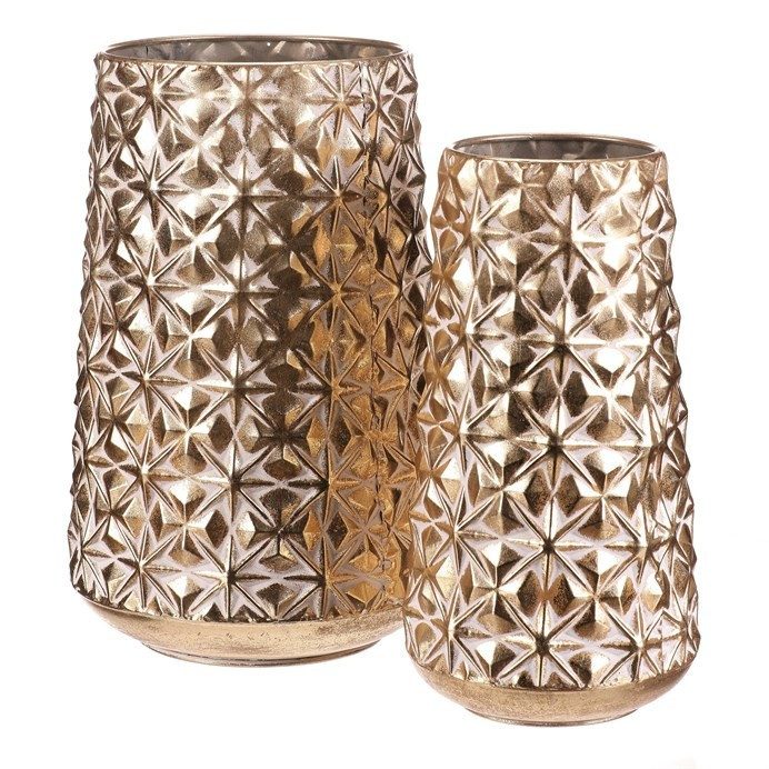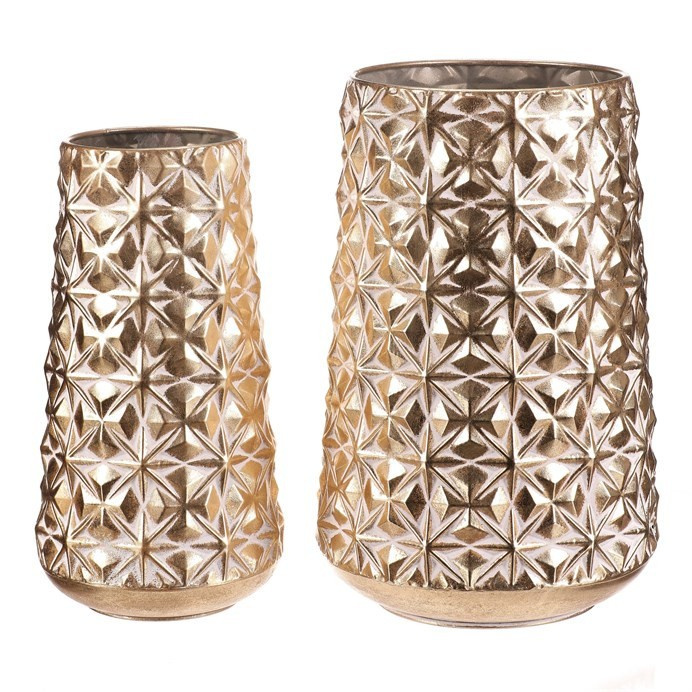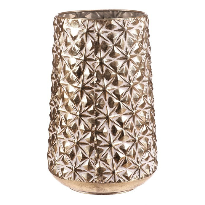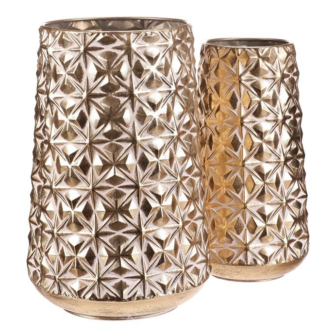 Kovový obal se zdobeným reliéfem květinového vzoru v elegantním zlatém odstínu vnese do vašeho domova slavnostní atmosféru. Sada obsahuje dvě velikosti, které skvěle doplní vánoční výzdobu a dodají rostlinám či přízdobám vznešený základ. Zlatý tón krásně odráží světlo a umocní kouzlo svátečních dní.