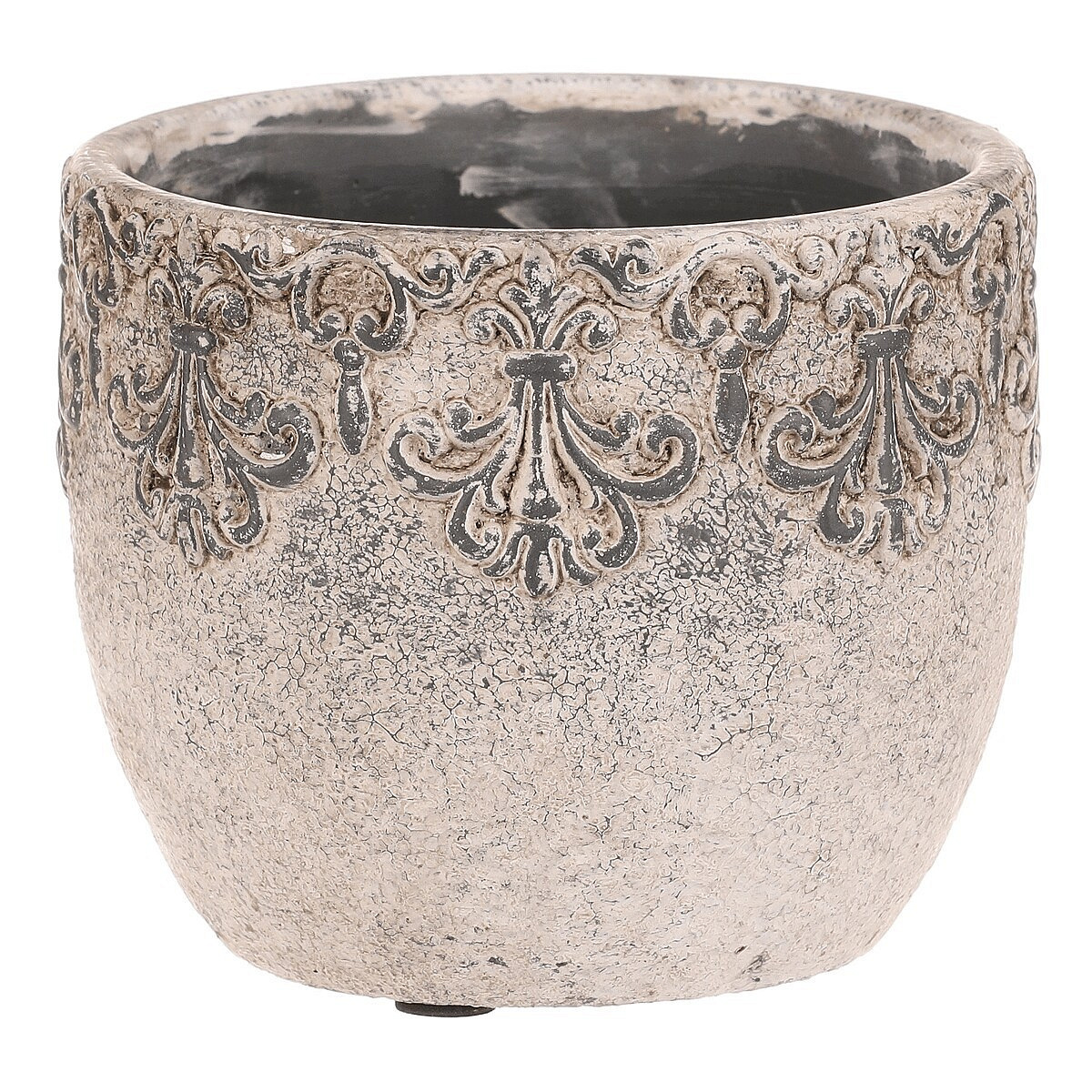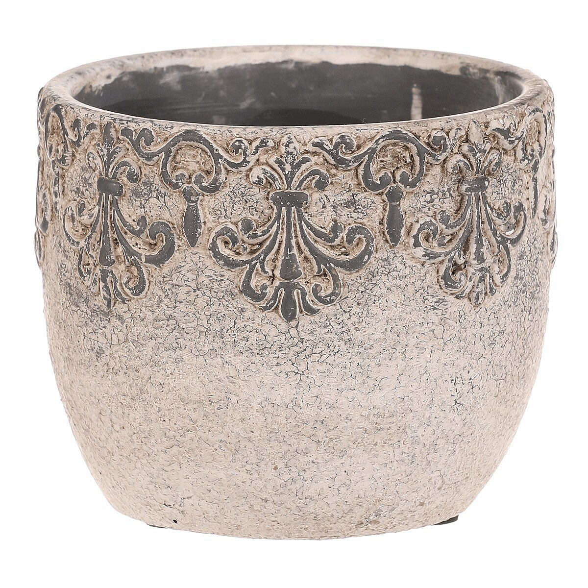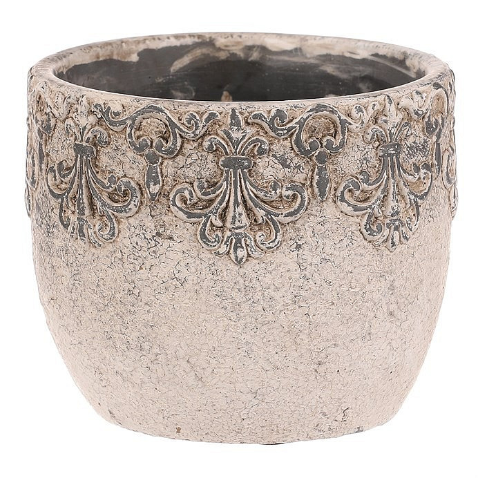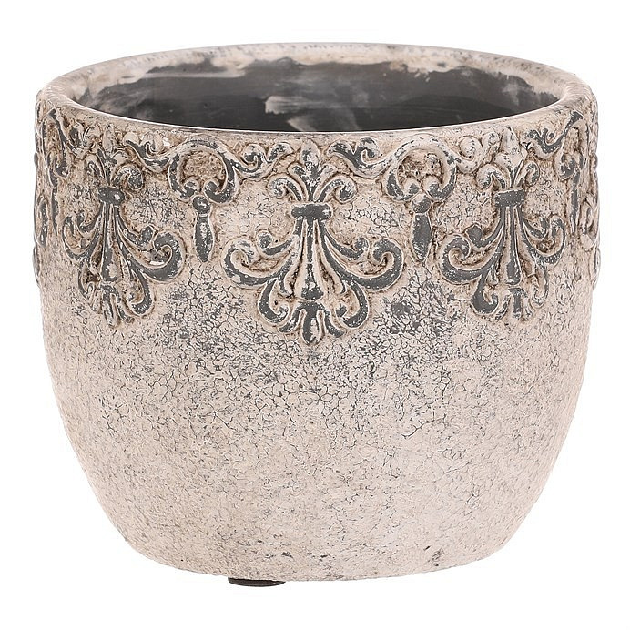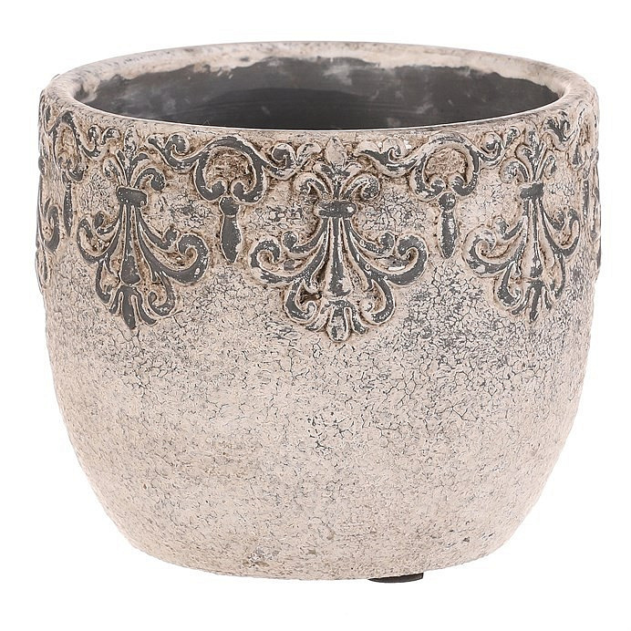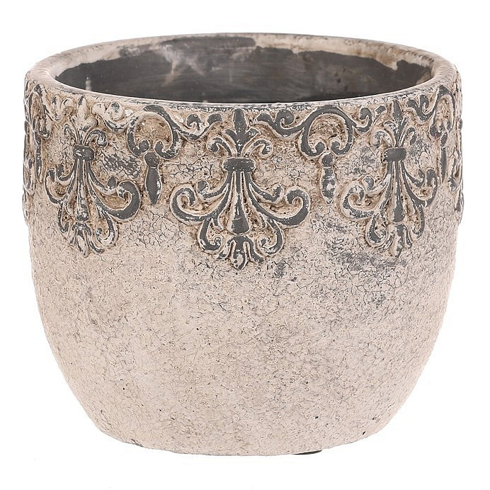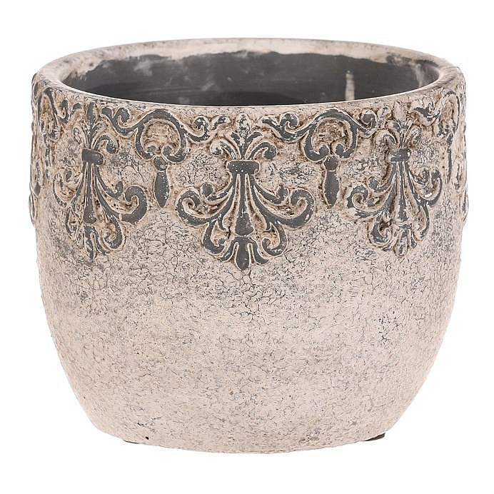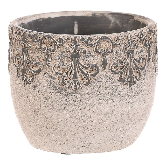 Obal na květiny - beton, ozdobné ornamenty, šedý