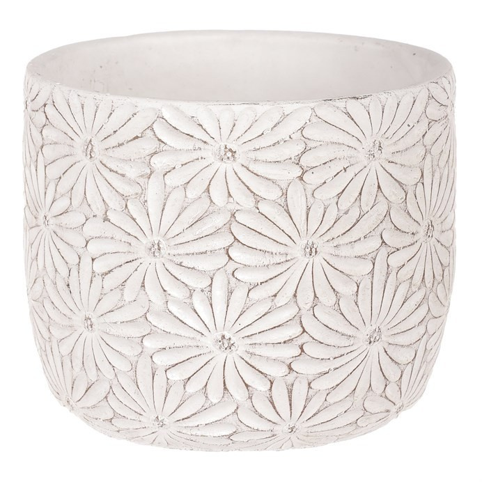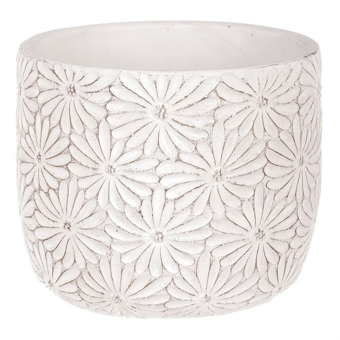 Přemýšlíte o výsadbě rostlin do nového obalu, který by vás nadchl svým vzhledem a byl přitom dostatečně pevný a odolný? Perfektním řešením pro vás bude právě tento velký bílý betonový obal s květinovým dekorem. Nabízí dostatek prostoru pro širokou paletu nejrůznějších květin nebo třeba sukulentů. Kombinace krásných rostlin zasazených do takto zdobené a tvarované dekorace spolu vytvoří jedinečnou kompozici. Při pohledu na tuto vámi vytvořenou krásu budete na sebe hrdí a mít skvělý pocit z dobře odvedené práce, což náležitě ocení i ostatní lidé ve vašem okolí.