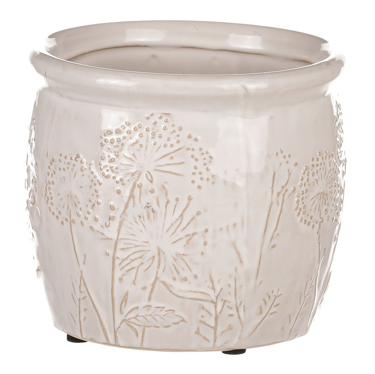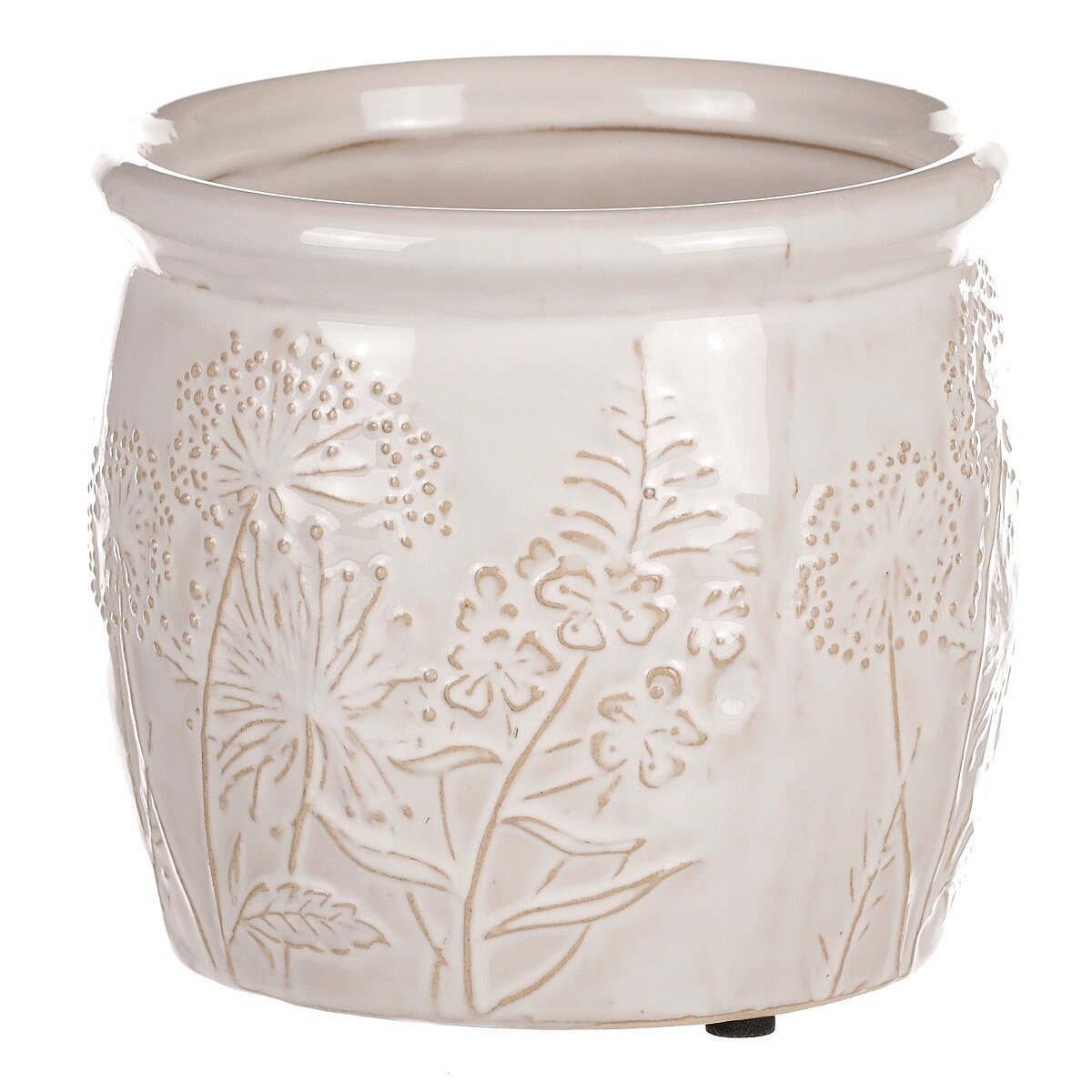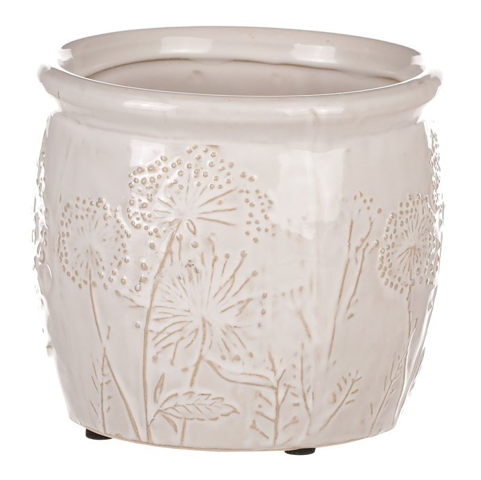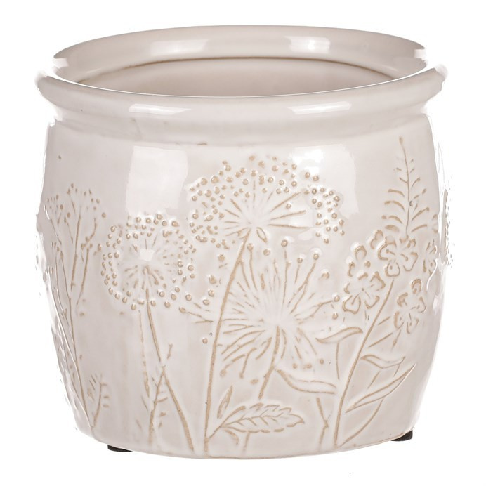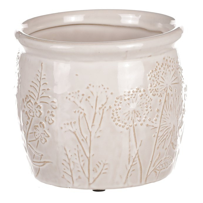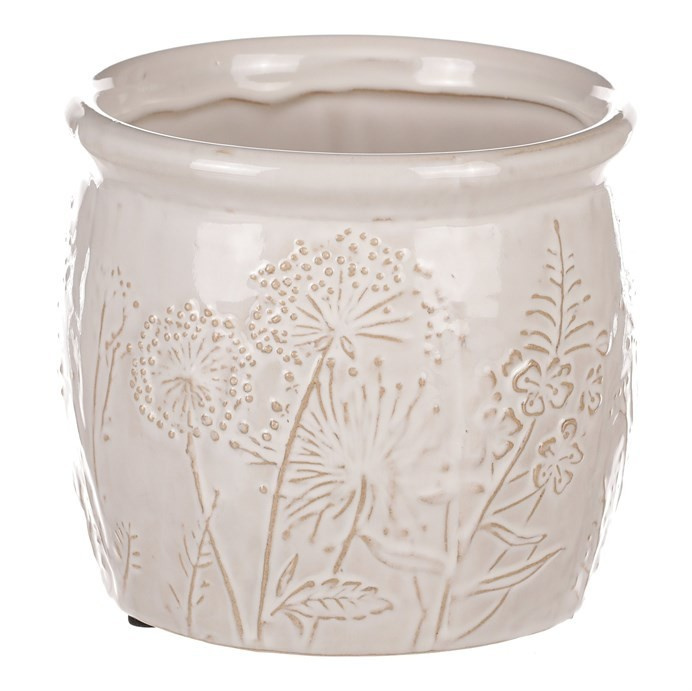 Béžový keramický obal na květiny s dekorem lučního kvítí je skvělým prostředkem, který umocní krásu vašich květin, či jiných ozdob v ní umístěných. Obal je zcela nepropustný, a když je třeba, zadržuje vodu a chrání okolní prostředí před vlhkostí. Naopak rostlinám poskytuje lepší podmínky, takže i řezané květiny vydrží delší dobu v dobré kondici. Váš interiér tím obohatíte o vkusný dekorativní prvek, který bude plnit estetickou i praktickou funkci na jedničku.