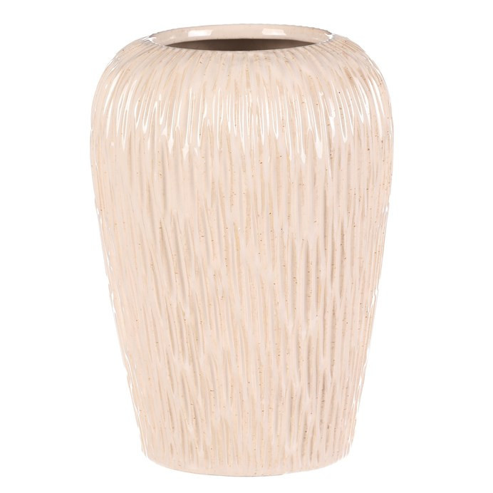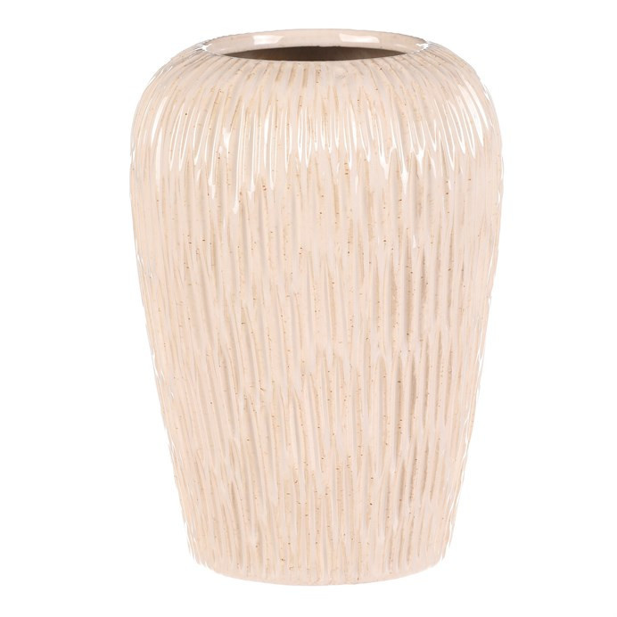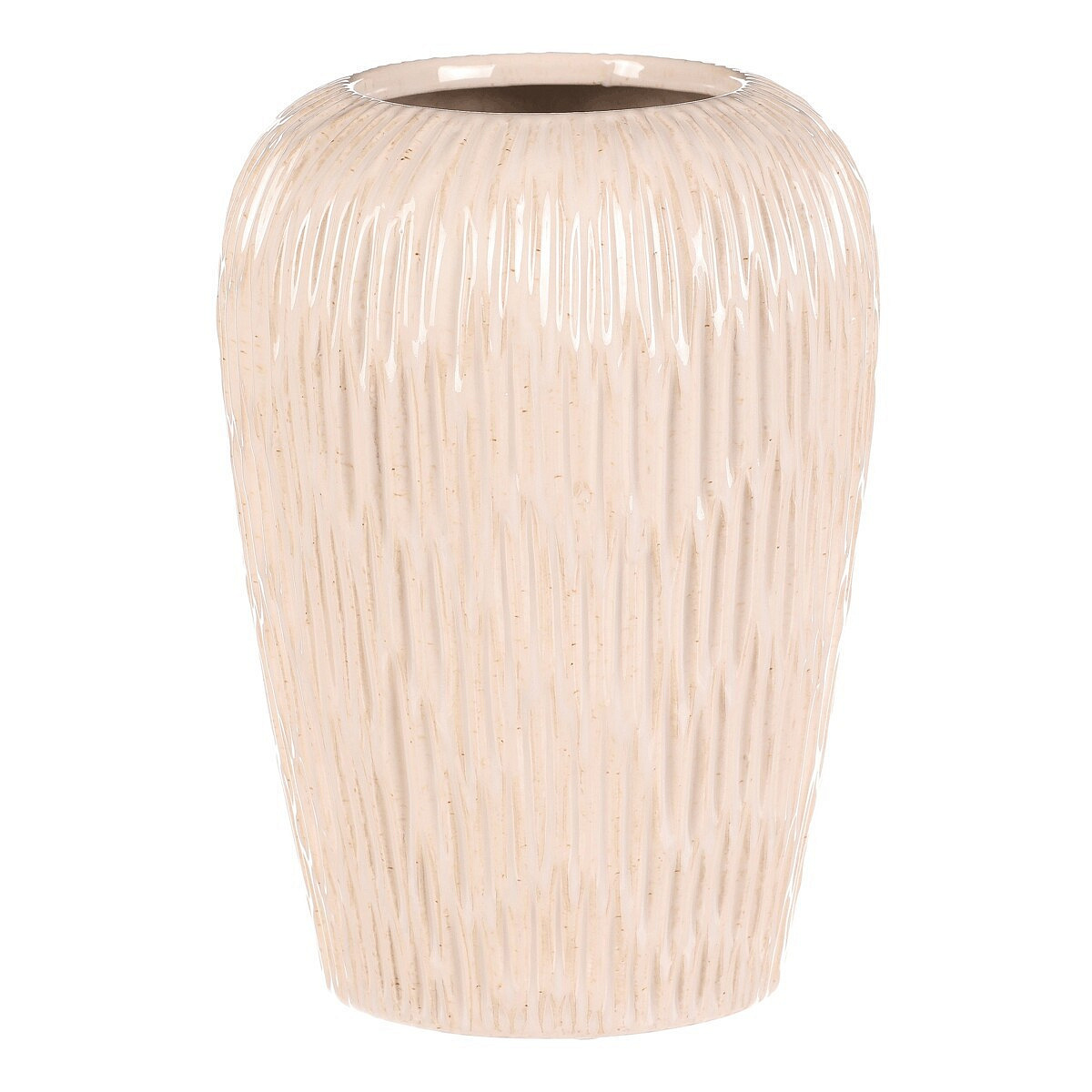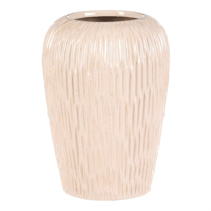 Zaoblená keramická váza v bílé barvě s elegantní texturou nabízí skvělý způsob, jak zvýraznit půvab každé rostliny. Její sofistikovaný design přitahuje pozornost a dodává prostoru svěží, moderní vzhled. Ideální pro všechny typy rostlin, tato váza se stane dokonalým doplňkem vašeho interiéru, ať už ji umístíte na stůl, polici nebo jiné viditelné místo.