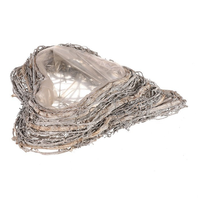 Obal na květiny pietní - proutěný, tvar srdce, menší, šedý