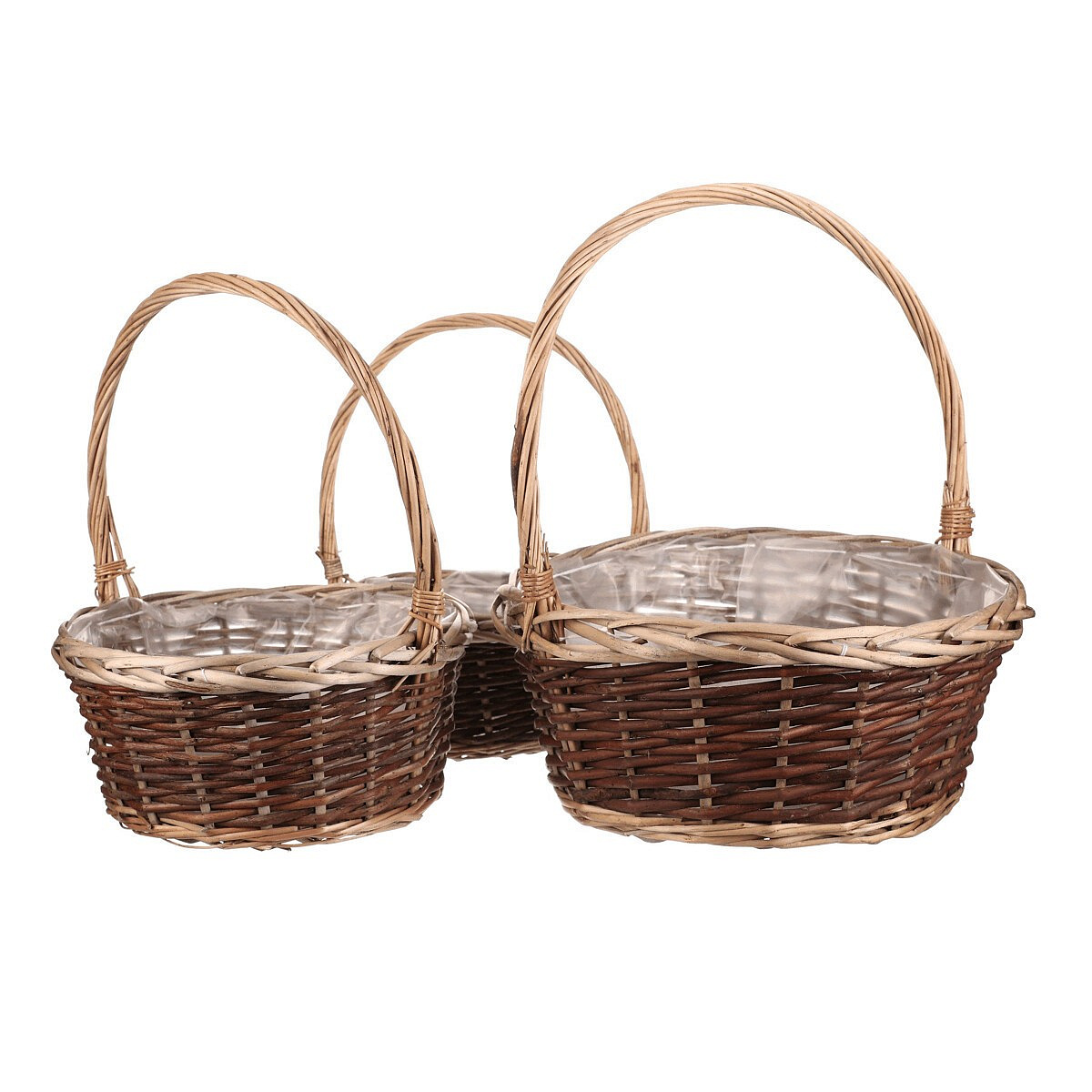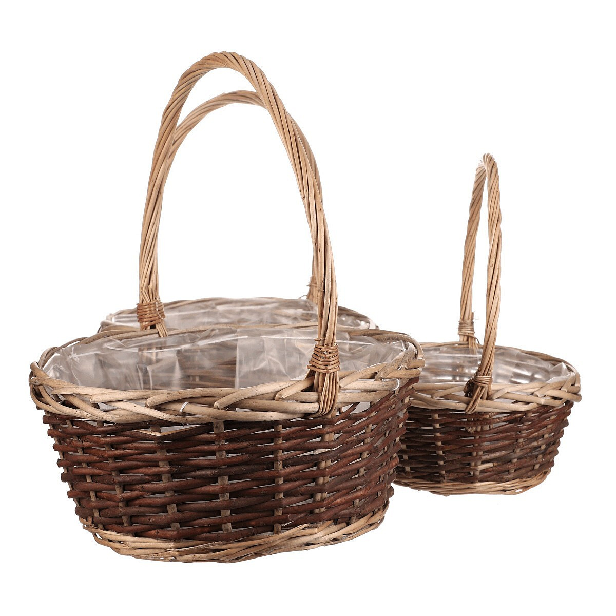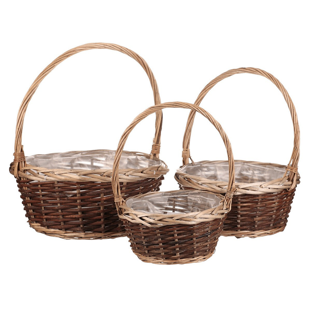 Sada tří proutěných obalů na květiny ve tvaru košíku s výraznou rukojetí přináší styl i funkčnost. Béžová a hnědá barva tvoří elegantní kombinaci přírodních odstínů, která ladí s jakýmkoli prostorem. Každý košík je vybaven ochrannou igelitovou vložkou, takže je ideální nejen pro aranžování dekorací, ale i samotných květin.