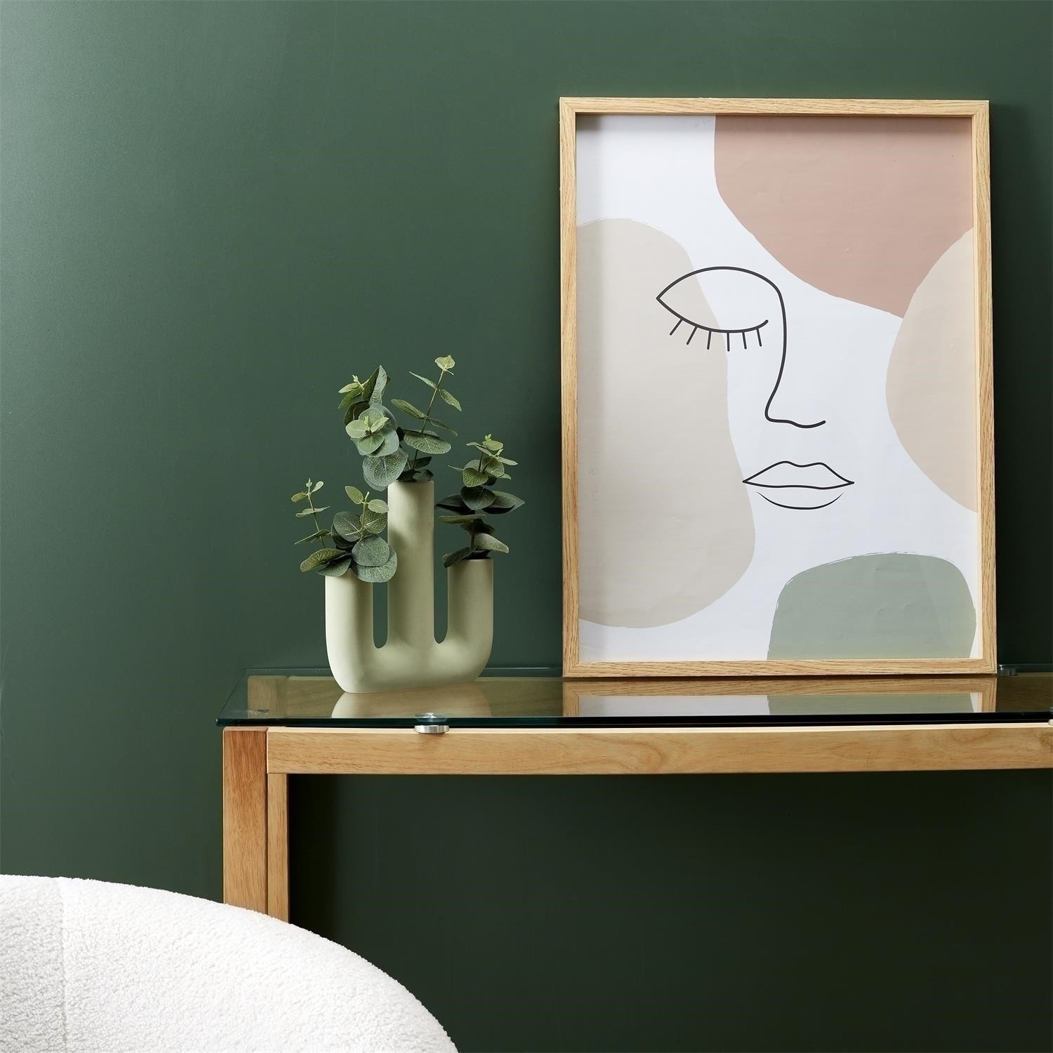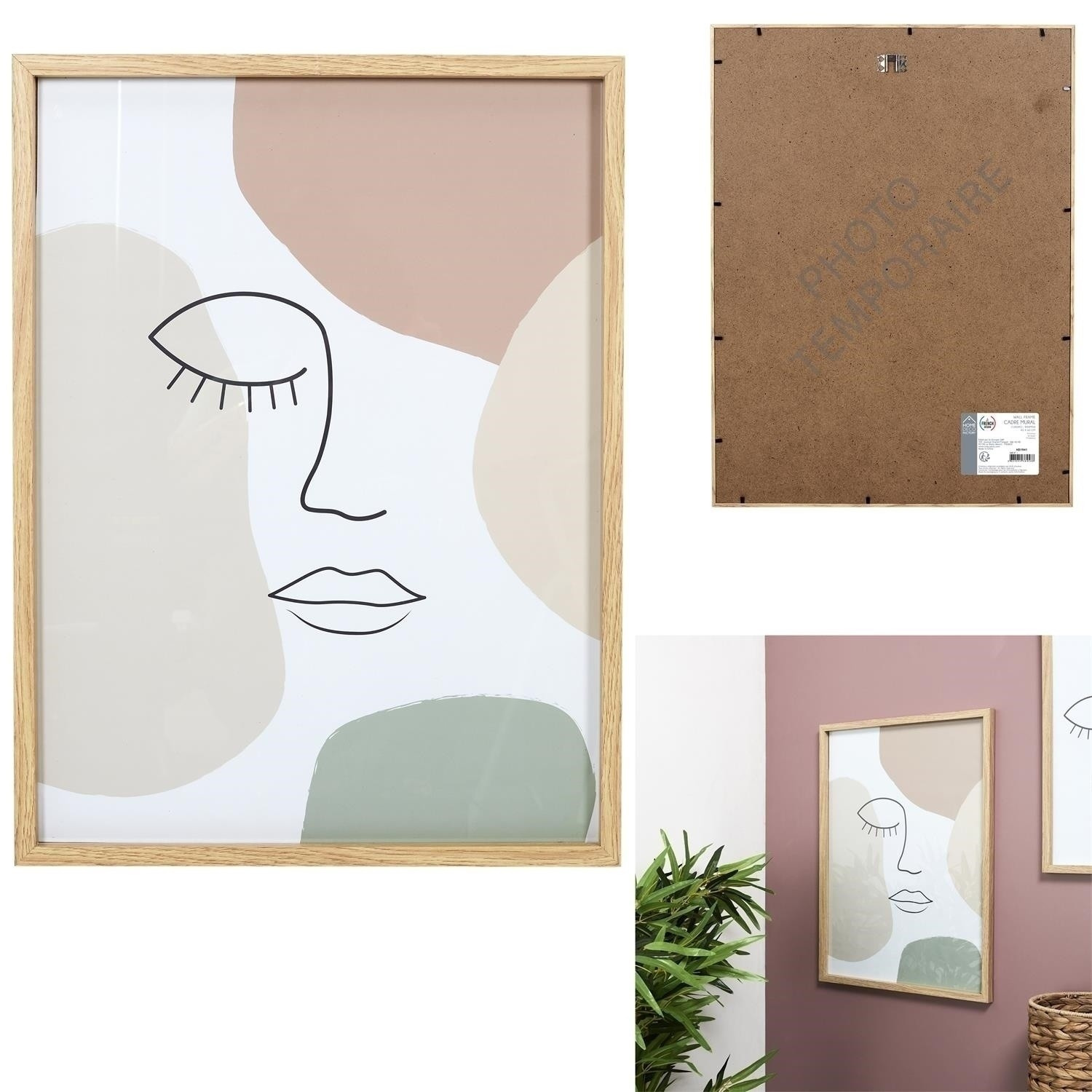 Obraz z kolekce Arte je pastelová ozdoba v dřevěném rámu, která bude netypickým akcentem na stěně v obývacím pokoji nebo předsíni. Obraz s pastelovými skvrnami a obrysem tváře se hodí do moderních, boho nebo skandinávských interiérů. Papírové pozadí obrazu bylo umístěno na desce z překližky. Obraz má úchyty na háček.