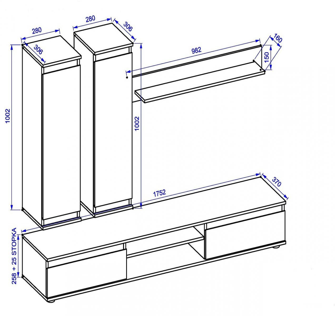 TV stolek: 175 / 28 / 37 cm (š/v/hl)