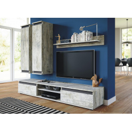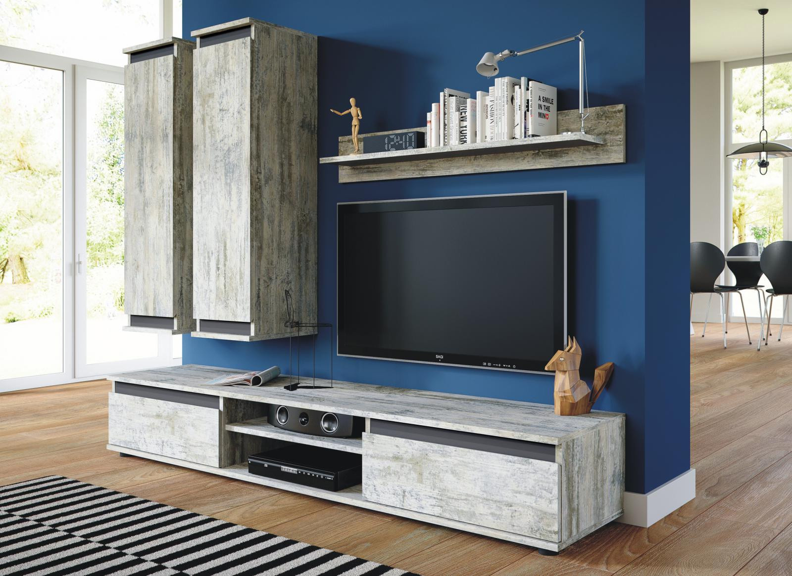 Obývací stěna Cher je vyrobena z lamina, v zajímavém a netradičním dekoru bílá borovice, která je doplněna detaily v odstínu antracit. Díky svým rozměrům je vhodná i do malometrážních bytů. Stěna se skládá ze dvou závěsných skříněk, police a TV stolku. Skříňky i stolek nabízí dostatek úložného prostoru. Ke stěně doporučujeme dokoupit konferenční stolek Cher, nebo Monako ve stejném dekoru. Všechny díly jsou dodávány v demontu a součástí je montážní návod, včetně všech spojovacích prvků. Vyobrazené doplňky a dekorace nejsou v ceně.