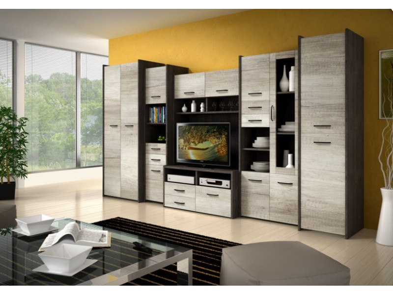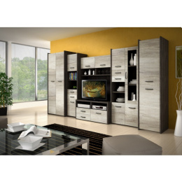 MOKKA II obývací  stěna je univerzální a vhodná pro všechny typy interiérů. Je vyrobena z vysoce kvalitních laminovaných desek s ABS hranami. Celou obývací stěnu zdobí elegantní rukojeti.