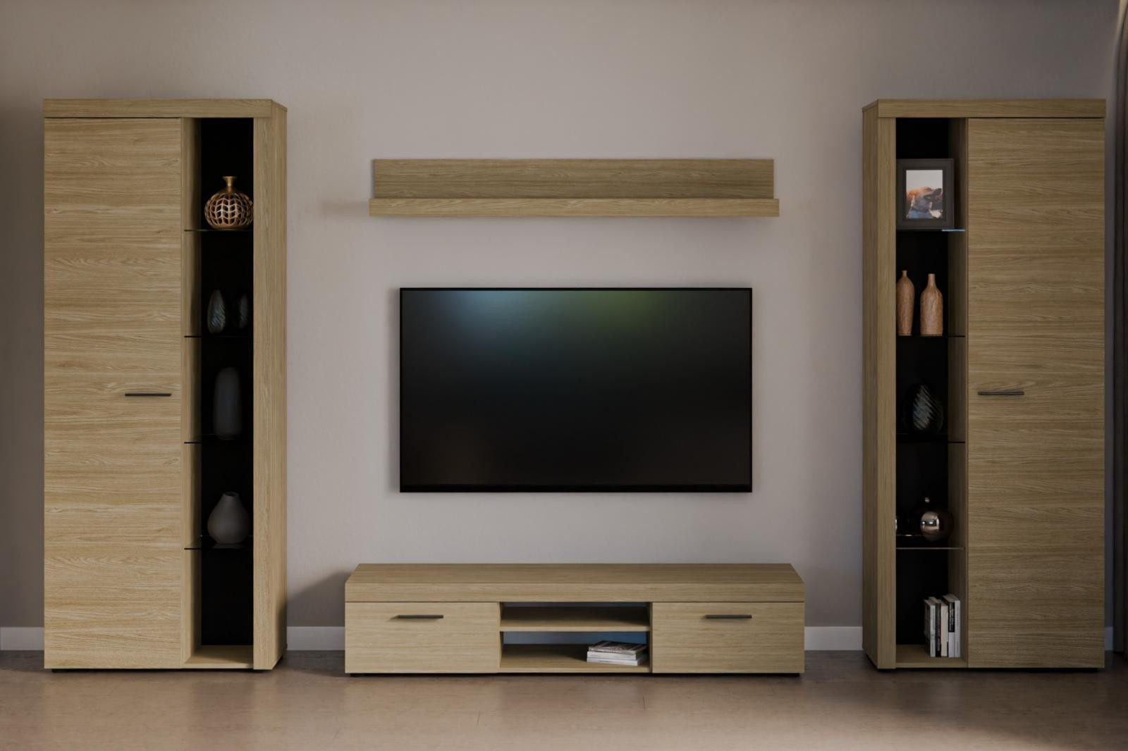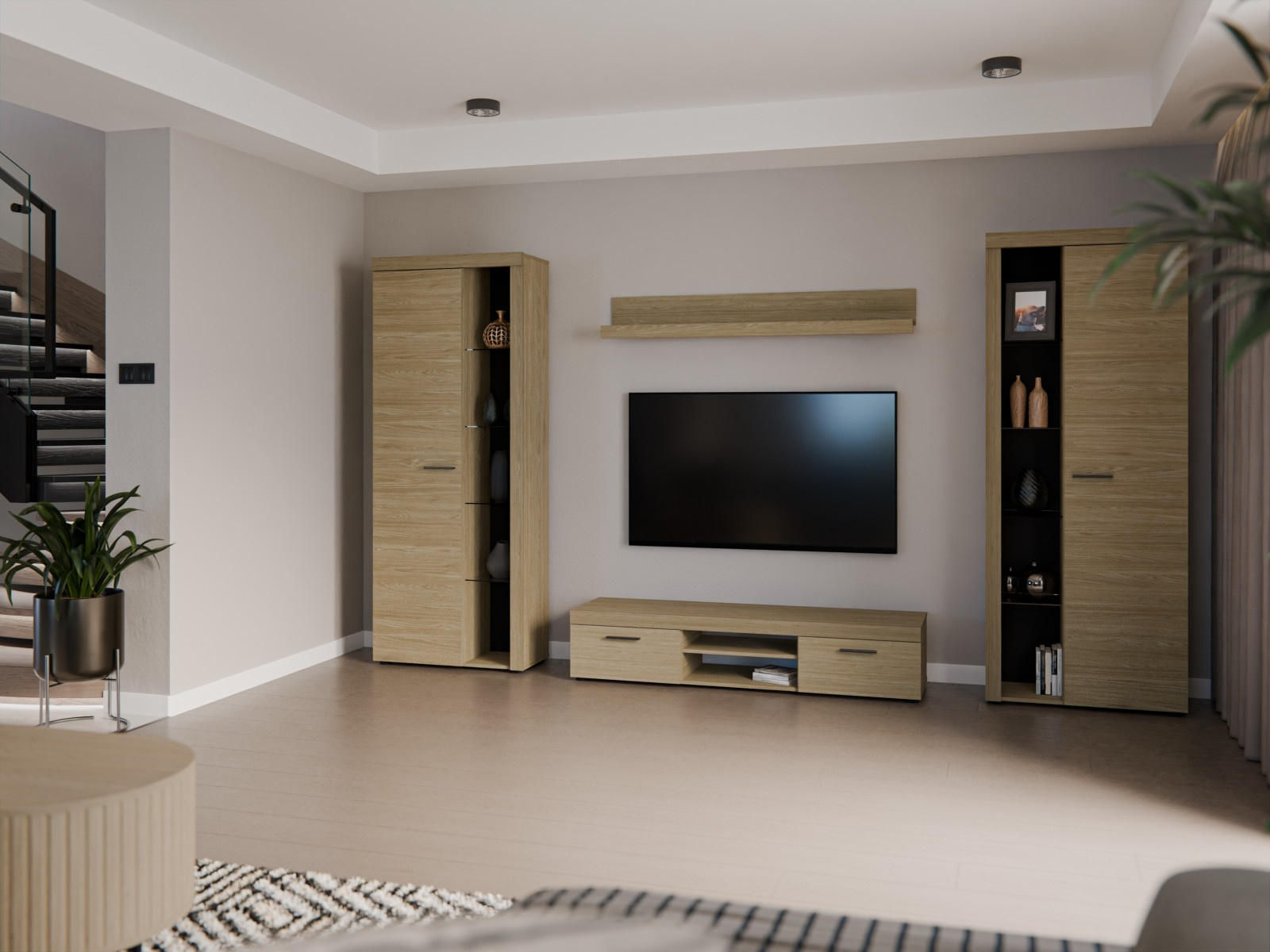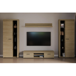 Obývací stěna Rizo patří mezi oblíbené modely moderního nábytku. Nabízí dostatek úložného prostoru a je vhodná i do menších pokojů. Stěna je vyrobena z lamina, které je odolné a snadné na údržbu. Ke stěně nabízíme i několik typů komod ve stejném provedení. Všechny prvky této sestavy jsou dodávány v demontu. Součástí je montážní plánek včetně všech potřebných spojovacích materiálů. Cena je uvedena za bytovou stěnu vyobrazenou na úvodní fotografii, bez komod, doplňků a dekorací. LED osvětlení není v ceně sestavy.
