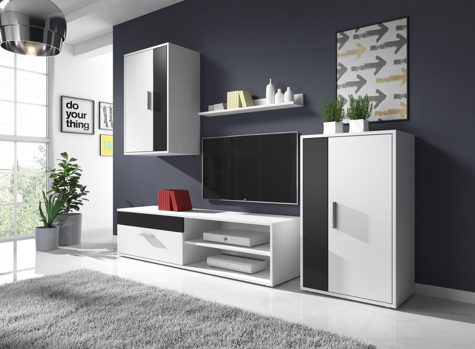 Obývací stěna Togo je vyrobena z lamina, které je odolné proti poškrábání a je velmi snadné na údržbu. Díky svým rozměrům je vhodná i pro ty, kteří obývají malometrážní byty a garsonky. Televizní stolek má v levé části výklopná dvířka, v pravé části je police. Závěsná skříňka i komoda jsou uvnitř vybaveny policí. Cena je uvedena za komplet vyobrazený na fotografii, bez doplňků a dekorací. Obývací stěna Togo je dodávaná v demontu. Součástí balení je montážní návoz včetně všech potřebných spojovacích prvků.