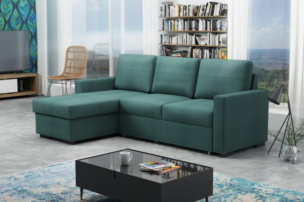 Tomáš je moderní rohová sedací souprava s nadčasovým designem. Její předností je pohodlí, praktičnost a univerzální použití. Můžete si ji podle potřeby sestavit jako levou nebo pravou, což je výhoda při zařizování obývacího pokoje. Nemusíte přemýšlet do jakého rohu postavíte sedací soupravu, jednoduše ji podle potřeby přizpůsobíte. Pohodlí při sezení zajišťuje kombinace pružin faliste s kvalitní PUR pěnou a velké opěrné polštáře, které jsou odnímatelné, takže si je můžete přizpůsobit svým potřebám. Praktickou stránkou sedací soupravy je úložný prostor a možnost rozložení k občasnému přespání Vaší návštěvy. Sedací souprava je potažena látkou jednobarevnou látkou a v nabídce najdete více barevných variant. V ceně sedací soupravy jsou 3 velké opěrné polštáře. Ostatní vyobrazené dekorace nejsou v ceně. Zobrazení barev produktu na fotografii se může nepatrně lišit od skutečnosti.