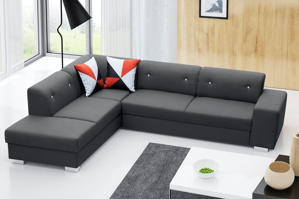 Rohová sedací souprava Digi je vyrobena v jednoduché lini s nádechem retro stylu. Je vhodná do každého interiéru a stane se příjemným centrem odpočinku a setkání s rodinou nebo přáteli. Sedáky jsou vyplněny kombinací pružin a PUR pěny a díky tomu je sedací souprava velice pohodlná. Samozřejmostí je možnost rozložení pro příležitostné přespání návštěvy a úložný prostor např. na lůžkoviny. Retro nádech zdůrazňují knoflíky na opěradle, které jsou v kontrastní barvě a krásně tak vyniknou. Sedací soupravu nabízíme v levém i pravém provedení a v několika oblíbených barvách. V ceně sedací soupravy jsou dva vzorované polštářky, které jsou vyobrazené na fotografii. Ostatní vyobrazené doplňky a dekorace nejsou v ceně.