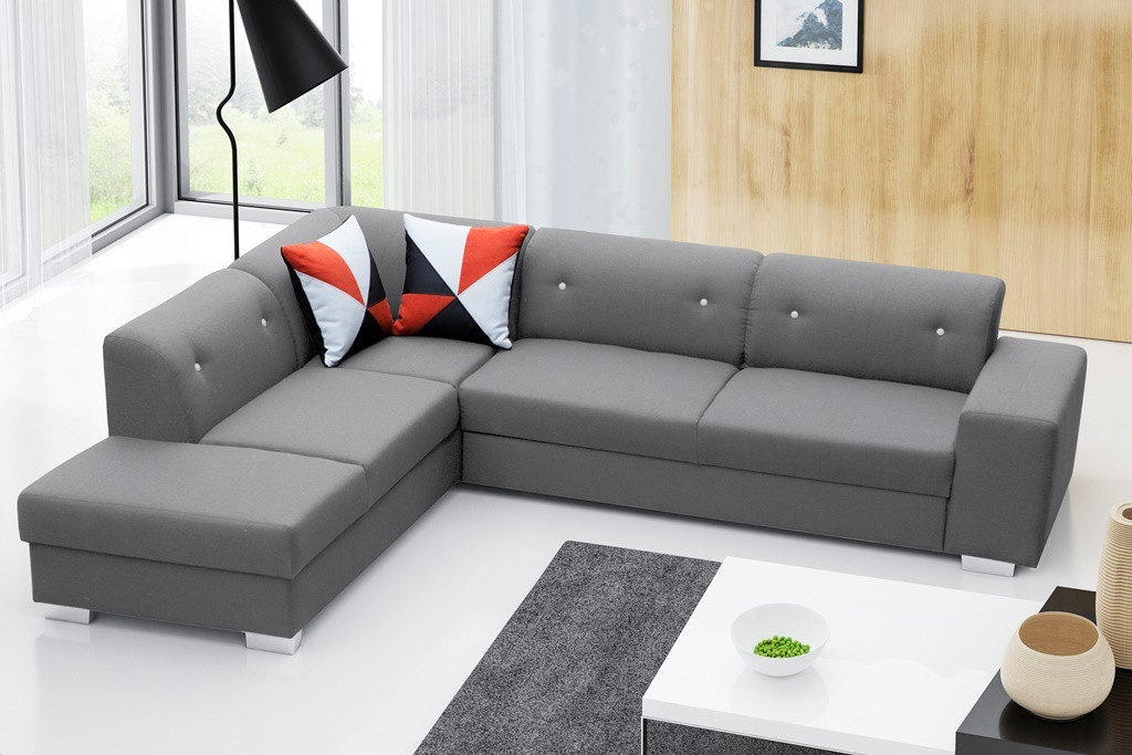 Rohová sedací souprava Digi je vyrobena v jednoduché lini s nádechem retro stylu. Je vhodná do každého interiéru a stane se příjemným centrem odpočinku a setkání s rodinou nebo přáteli. Sedáky jsou vyplněny kombinací pružin a PUR pěny a díky tomu je sedací souprava velice pohodlná. Samozřejmostí je možnost rozložení pro příležitostné přespání návštěvy a úložný prostor např. na lůžkoviny. Retro nádech zdůrazňují knoflíky na opěradle, které jsou v kontrastní barvě a krásně tak vyniknou. Sedací soupravu nabízíme v levém i pravém provedení a v několika oblíbených barvách. V ceně sedací soupravy jsou dva vzorované polštářky, které jsou vyobrazené na fotografii. Ostatní vyobrazené doplňky a dekorace nejsou v ceně.