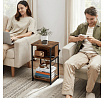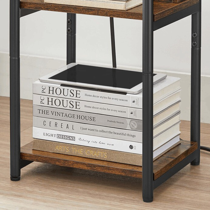 Odkládací stolek s elektrickou zásuvkou a USB konektorem kombinuje praktické využití s industriálním designem v dekoru old wood. Deska a police jsou vyrobeny z MDF s hnědým povrchem, který věrně imituje strukturu dřeva, zatímco pevné kovové nohy s práškovým lakem zajišťují stabilitu a dlouhou životnost. Stolek nabízí otevřený odkládací prostor a spodní polici pro uskladnění drobností, přičemž rektifikační nohy umožňují vyrovnání na nerovném povrchu. Integrovaná elektrická zásuvka a USB port poskytují pohodlné napájení elektroniky přímo u stolu. Kompaktní rozměry 30 × 34 × 58 cm usnadňují umístění v různých typech interiérů.