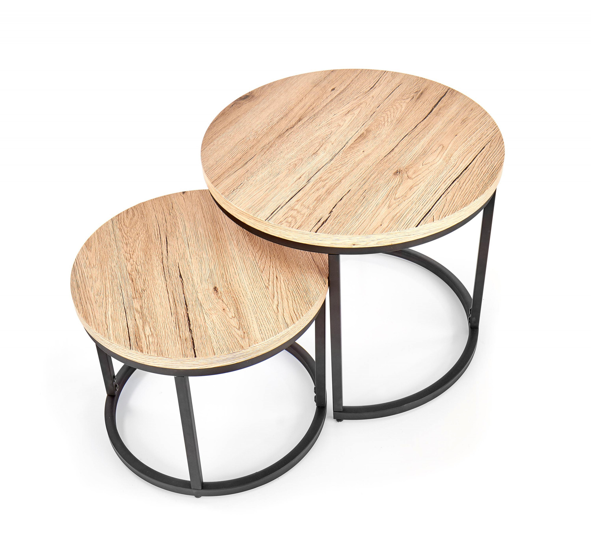 Rozměry: velká - O53/45 cm, malá - O43/35 cm, sada 2 lavic, materiál: MDF dýha / práškově lakovaná ocel, barva: dub san remo - černá.