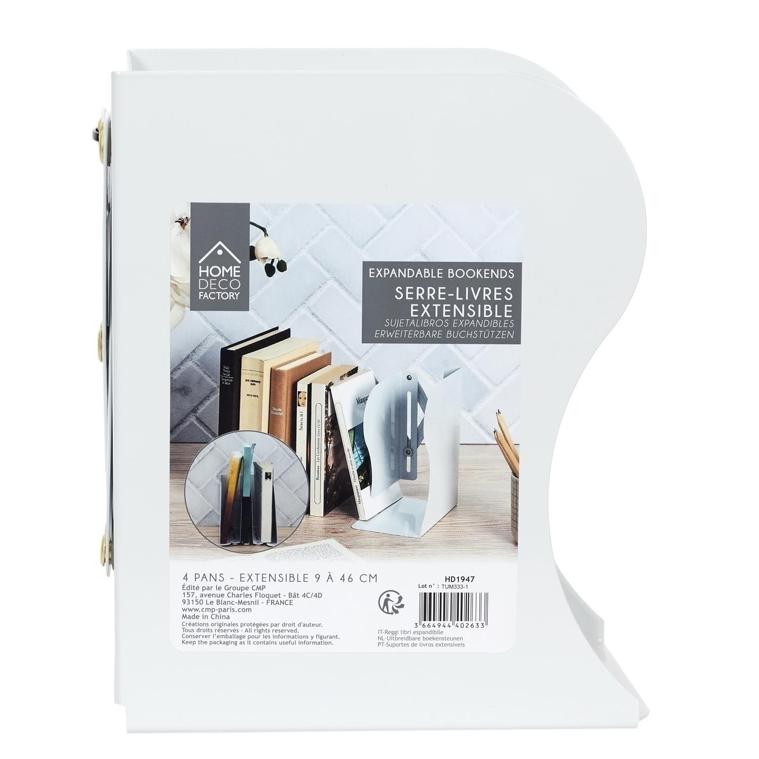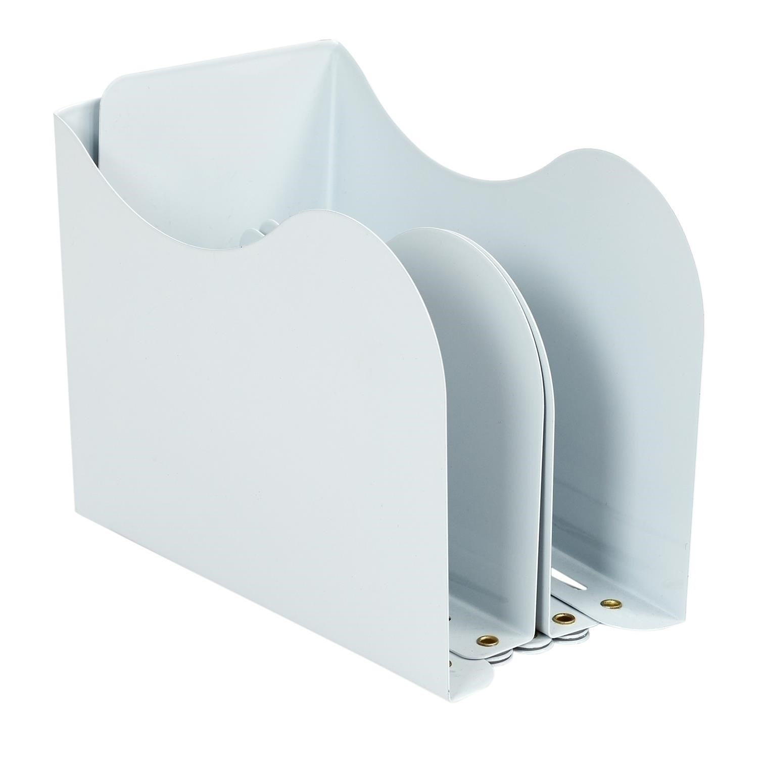 Univerzální organizér s nastavitelnou šířkou se osvědčí v kanceláři na šanony nebo knihy, nebo v domácí knihovně. Organizér je vybaven dvěma stěnami a dalšími dvěma přihrádkami, které umožní třídění knih nebo šanonů. Organizér s nastavitelnou šířkou je vyroben z kovu natřeného na bílo. Rozměry po složení: 10x15x19 cm Maximální šířka 46 cm Minimální šířka 10 cm Rozměry kartonu: 24x33x42,5 cm. Max 8 ks v kartonu