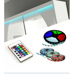 LED pásek je skvělý nápad pro podsvícení a dekoraci nábytku. Může sloužit jako ozdoba na regály, police nebo skříně. Charakterizuje se nízkou spotřebou energie, protože je ekologická a energeticky úsporná. LED diody jsou umístěny na samolepicí pásce, což usnadňuje montáž. Páska má napájecí zdroj pro připojení k elektrické síti a DÁLKOVÝ OVLADAČ, který usnadňuje ovládání. Pilot posiADA mnoho možností, mimo jiné lze měnit barvy. Podrobné informace: Diody SMD 5050, Počet diod: 30 LED/m, Výkon: 6 W/m, Napětí: 12 V DC, Úhel svícení: 120⁰, Stupeň ochrany: IP20, Barva podkladu LED pásky: Bílá, Barva světla: RGB, Sekvence: +12; BGR.
