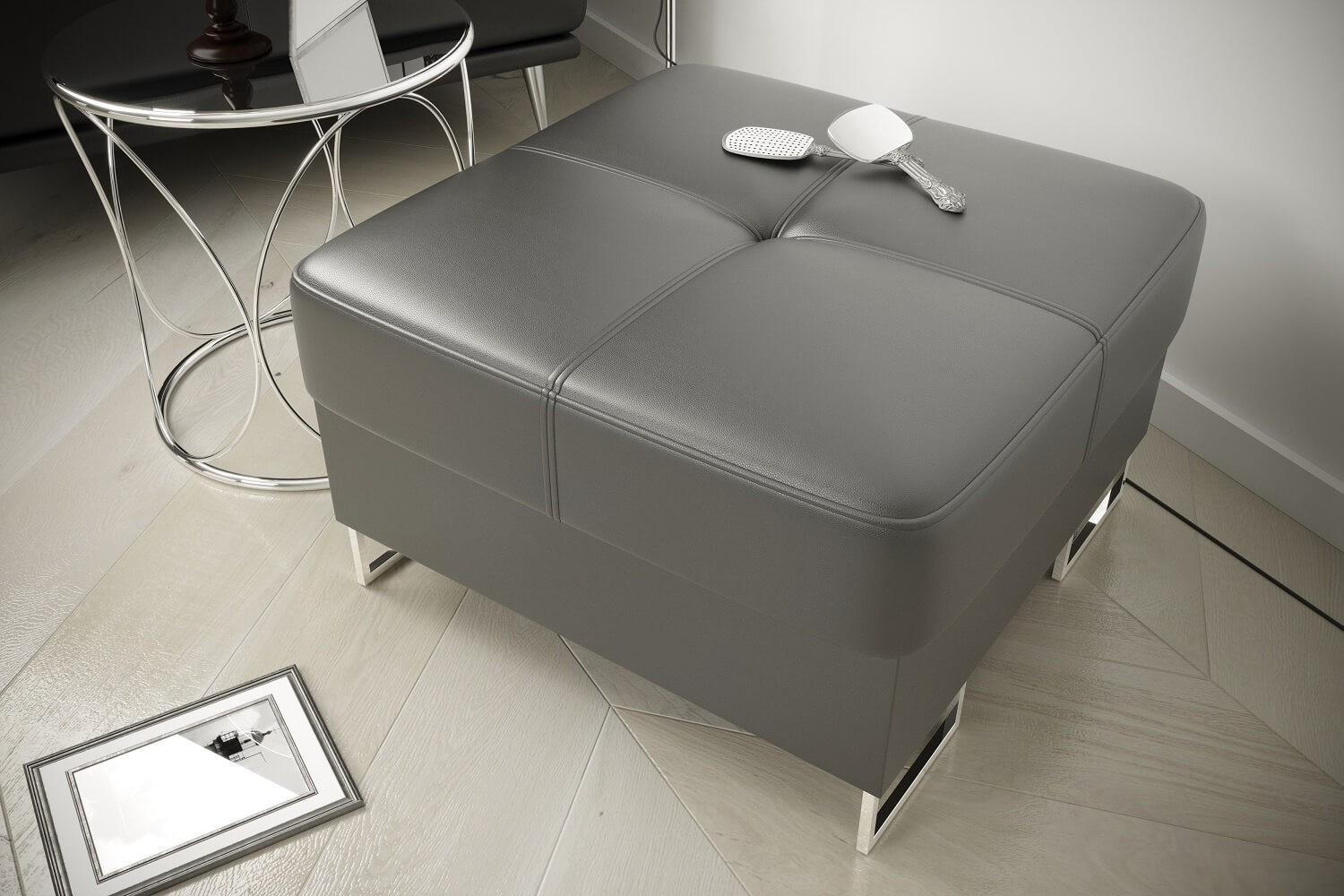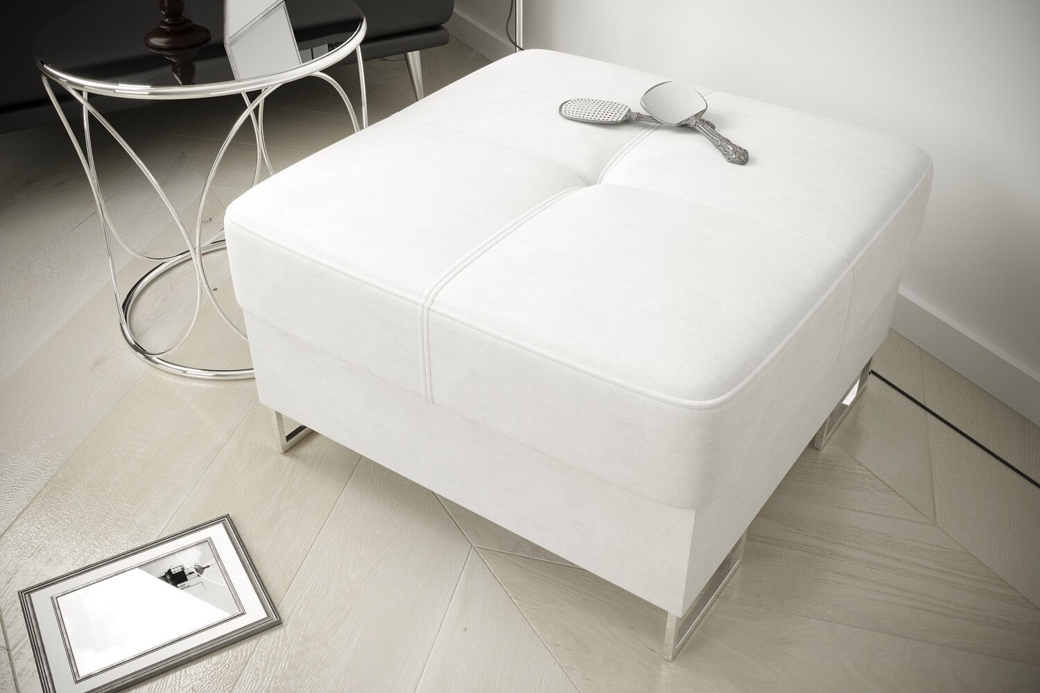 Taburet s uložným prostorem GALAXY 55×55 přírodní kůže - bílá kůže