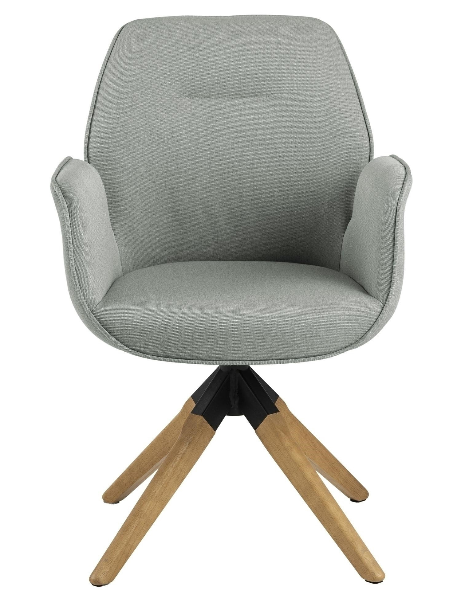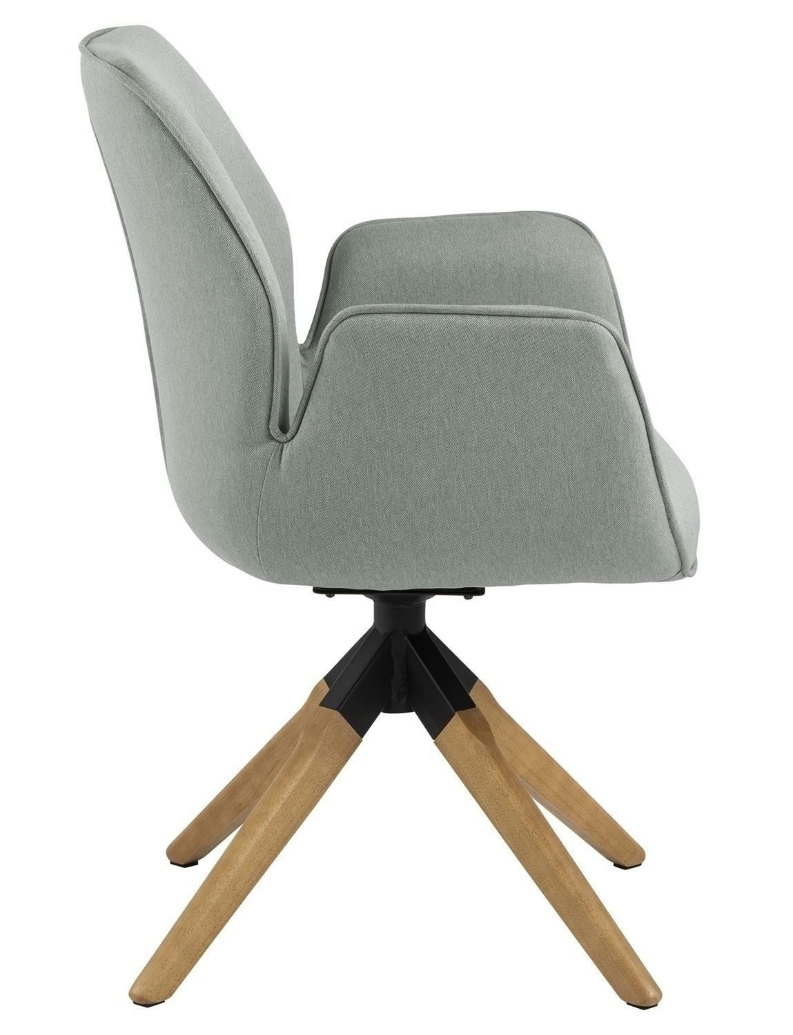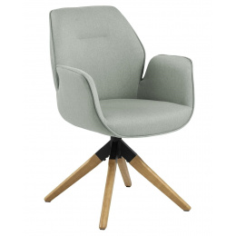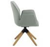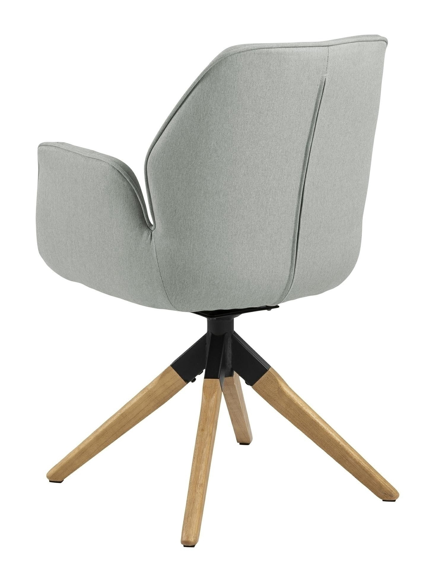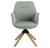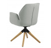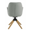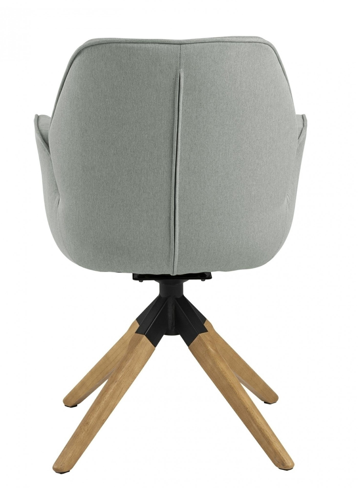 Židle ve skandinávském stylu Aura je mimořádně efektní a pohodlné sedadlo. Odpovídajícím způsobem tvarované sedadlo bylo potaženo měkkou čalounickou pěnou a látkou Town light grey 13. Tkanina židle je snadno udržovatelná v čistotě. Teplý odstín šedé způsobí, že interiér jídelny nebo obývacího pokoje bude teplý a útulný. Područky v optimální výšce byly vytvarovány směrem ven, aby zvýšily pohodlí při sezení. Základem židle jsou čtyři nohy z masivního a olejovaného kaučukového dřeva. Nohy židle vycházejí z jednoho společného bodu a rozšiřují se poměrně široce, aby zaručily stabilitu. Sedák židle je otočný. Tato funkce je díky černému, kovovému mechanismu, který kromě funkce otáčení také spojuje židle se sedadlem. Rozměry kartonu: 77x42x62cm Max. množství kusů v kartonu: 1 Hmotnost: 12 kg